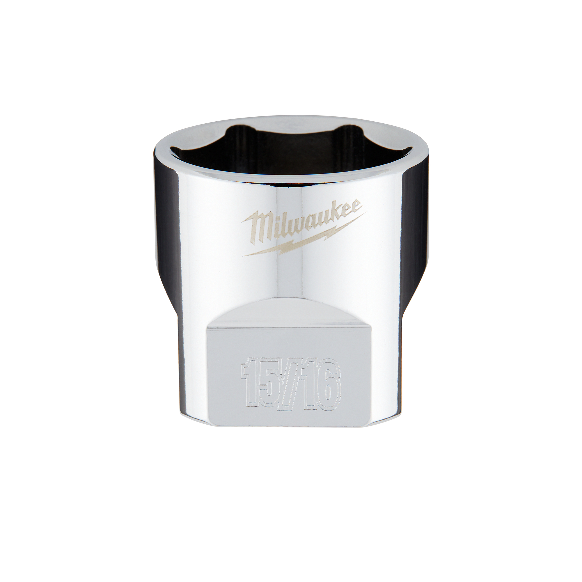 The MILWAUKEE® 3/8″ Drive 15/16″ SAE 6-Point Socket with FOUR FLAT™ Sides was designed from the ground up to be part of the most versatile socket family. The 3/8″ drive sockets are wrench-ready and feature an innovative design with four parallel flat sides to deter rolling. SAE socket sizes are stamped into the flats for better visibility. Optimized socket geometry helps reduce bolt rounding and stripping.