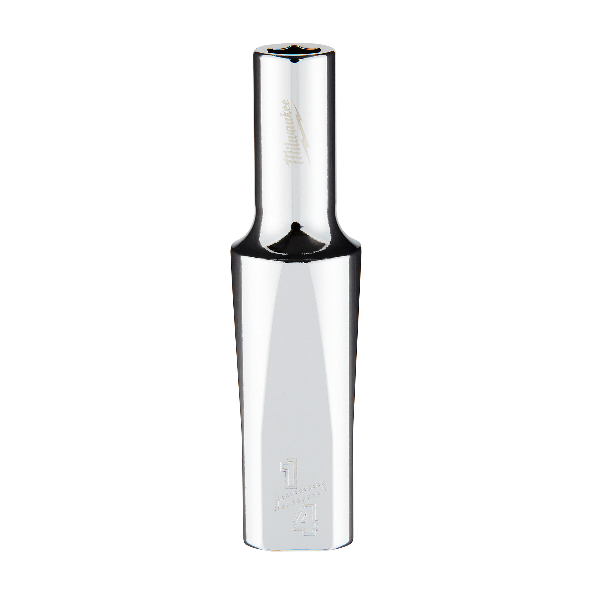 The MILWAUKEE® 3/8″ Drive 1/4″ SAE 6-Point Socket with FOUR FLAT™ Sides was designed from the ground up to be part of the most versatile socket family. The 3/8″ drive sockets are wrench-ready and feature an innovative design with four parallel flat sides to deter rolling. SAE socket sizes are stamped into the flats for better visibility. Optimized socket geometry helps reduce bolt rounding and stripping.
