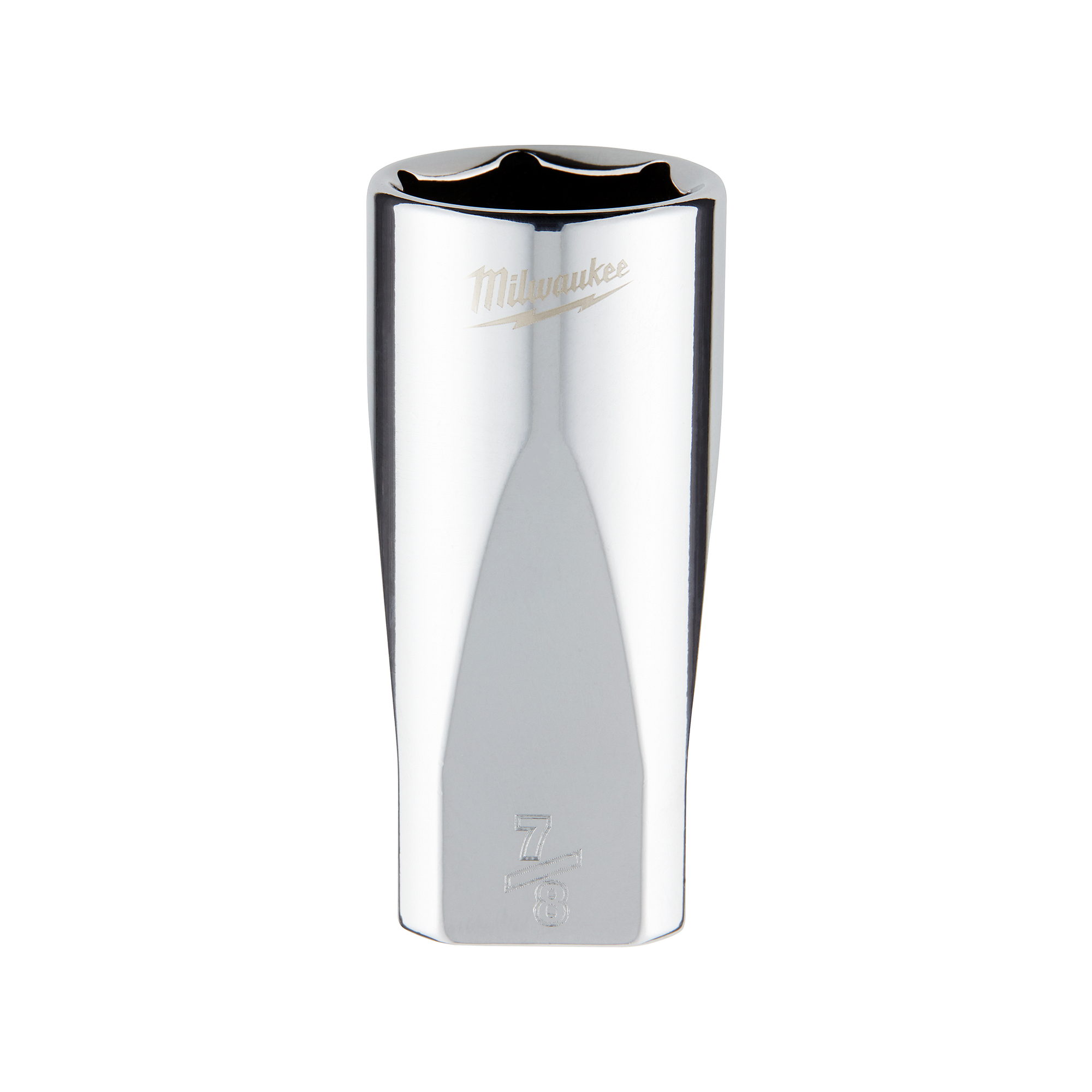The MILWAUKEE® 3/8″ Drive 7/8″ SAE 6-Point Deep Socket with FOUR FLAT™ Sides was designed from the ground up to be part of the most versatile socket family. The 3/8″ drive sockets are wrench-ready and feature an innovative design with four parallel flat sides to deter rolling. SAE socket sizes are stamped into the flats for better visibility. Optimized deep well socket geometry helps reduce bolt rounding and stripping.