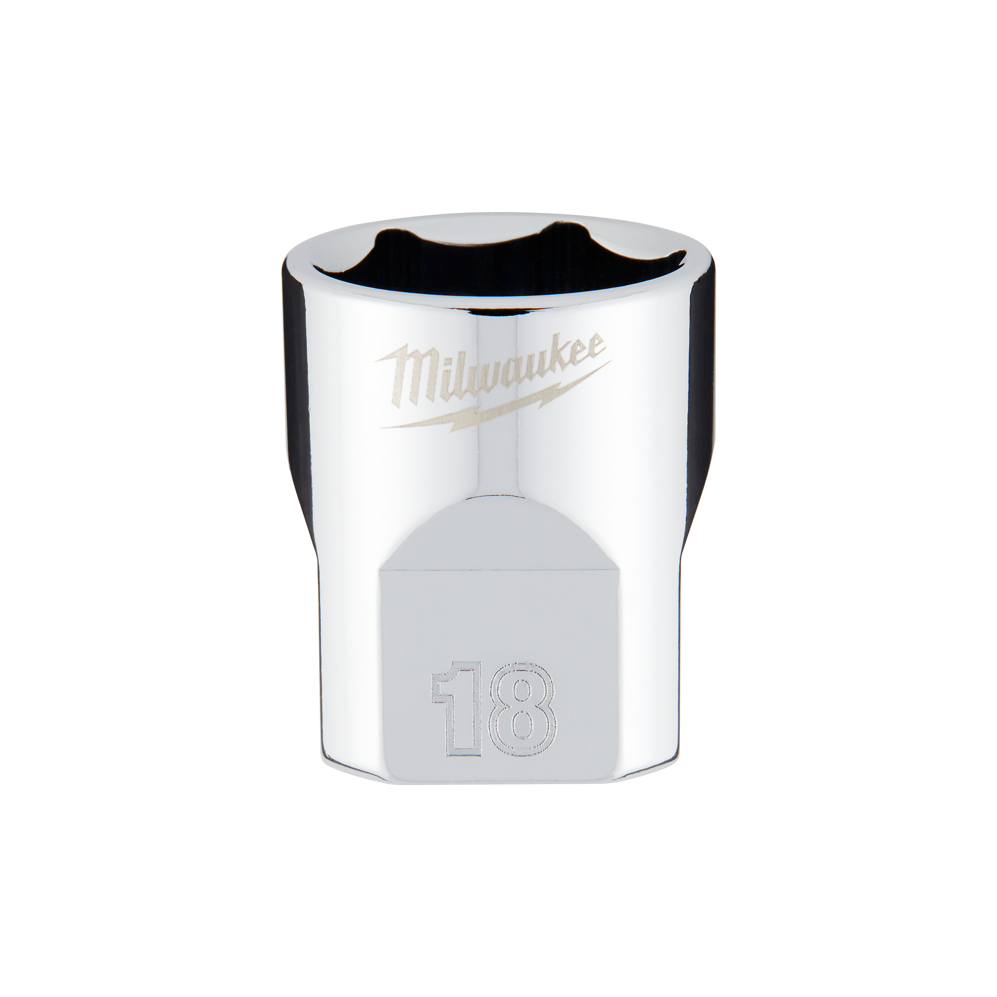 The MILWAUKEE® 3/8″ Drive 18mm Metric 6-Point Socket with FOUR FLAT™ Sides was designed from the ground up to be part of the most versatile socket family. The 3/8″ drive sockets are wrench-ready and feature an innovative design with four parallel flat sides to deter rolling. Metric socket sizes are stamped into the flats for better visibility. Optimized socket geometry helps reduce bolt rounding and stripping.