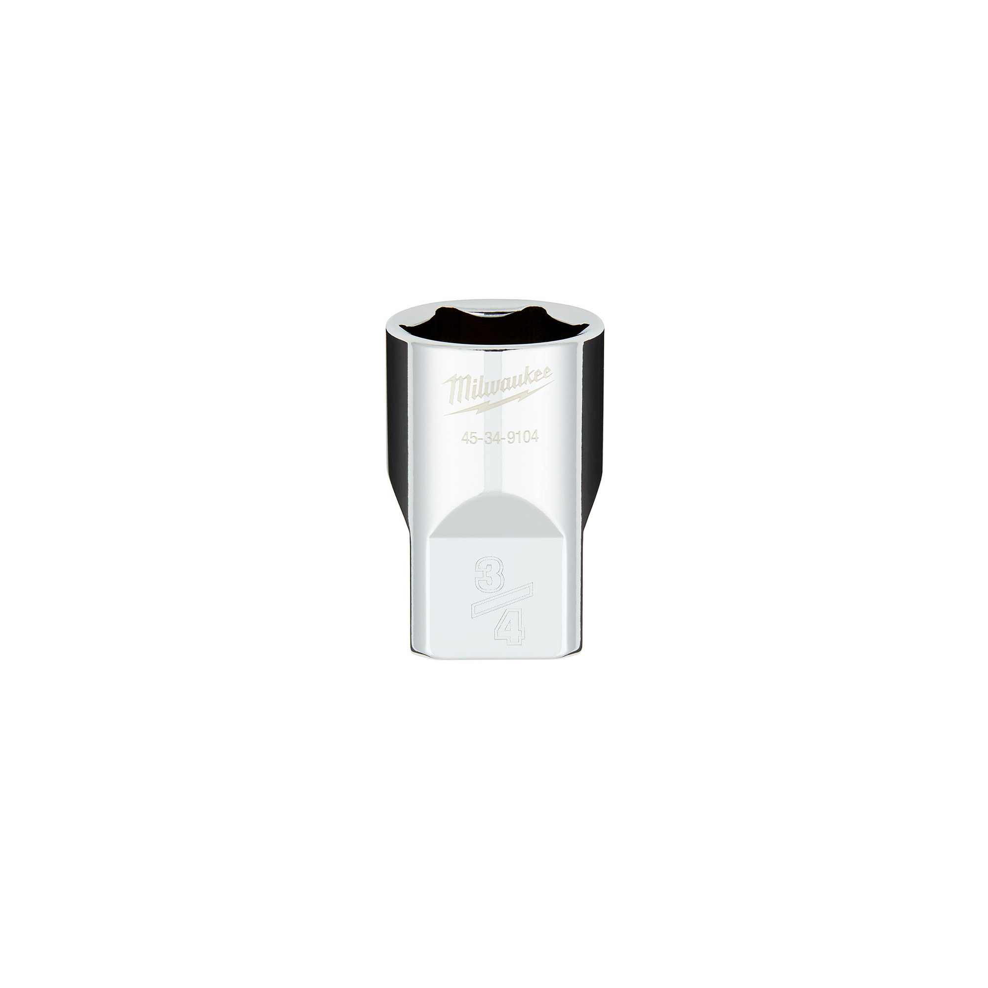 The MILWAUKEE® 1/2″ Drive 3/4″ SAE 6-Point Socket with FOUR FLAT™ Sides was designed from the ground up to be part of the most versatile socket family. The 1/2″ drive sockets are wrench-ready and feature an innovative design with four parallel flat sides to deter rolling. SAE socket sizes are stamped into the flats for better visibility. Optimized socket geometry helps reduce bolt rounding and stripping.
