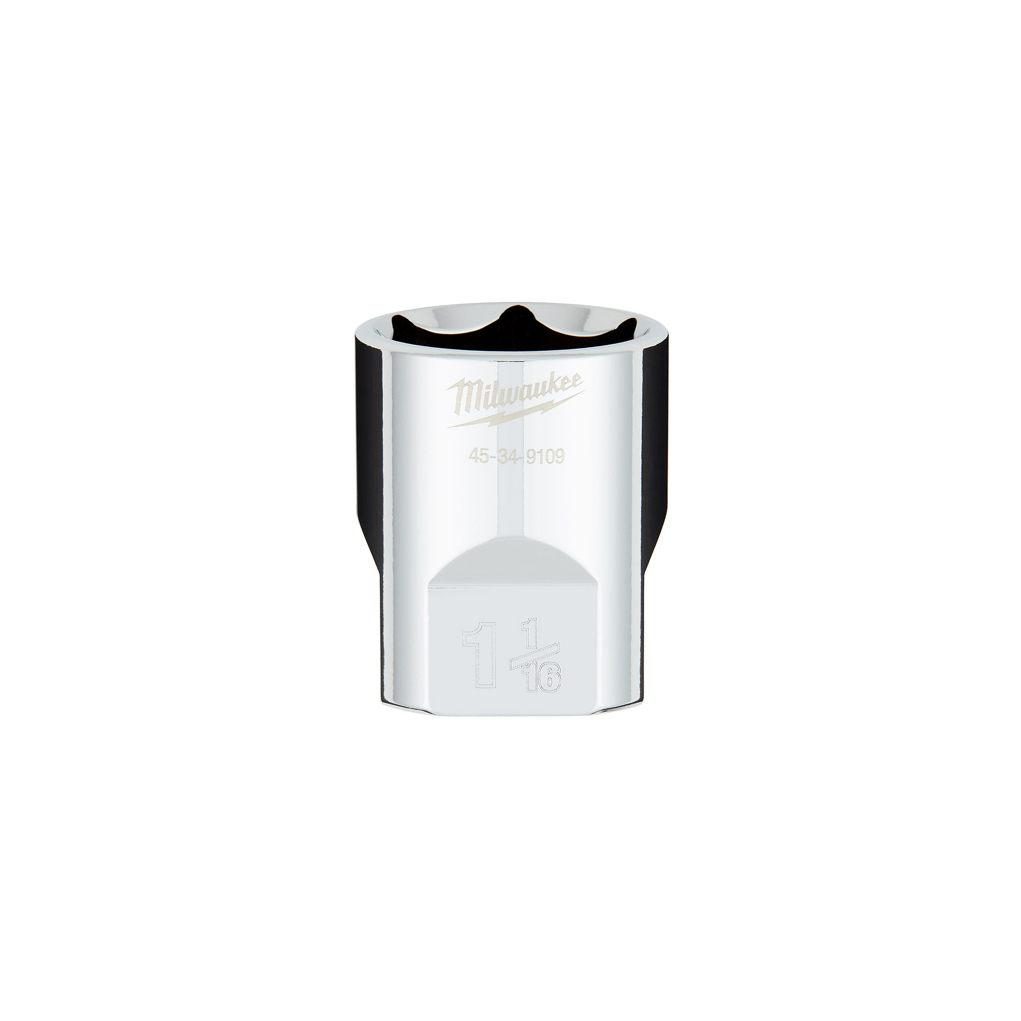 The MILWAUKEE® 1/2″ Drive 1-1/16″ SAE 6-Point Socket with FOUR FLAT™ Sides was designed from the ground up to be part of the most versatile socket family. The 1/2″ drive sockets are wrench-ready and feature an innovative design with four parallel flat sides to deter rolling. SAE socket sizes are stamped into the flats for better visibility. Optimized socket geometry helps reduce bolt rounding and stripping.
