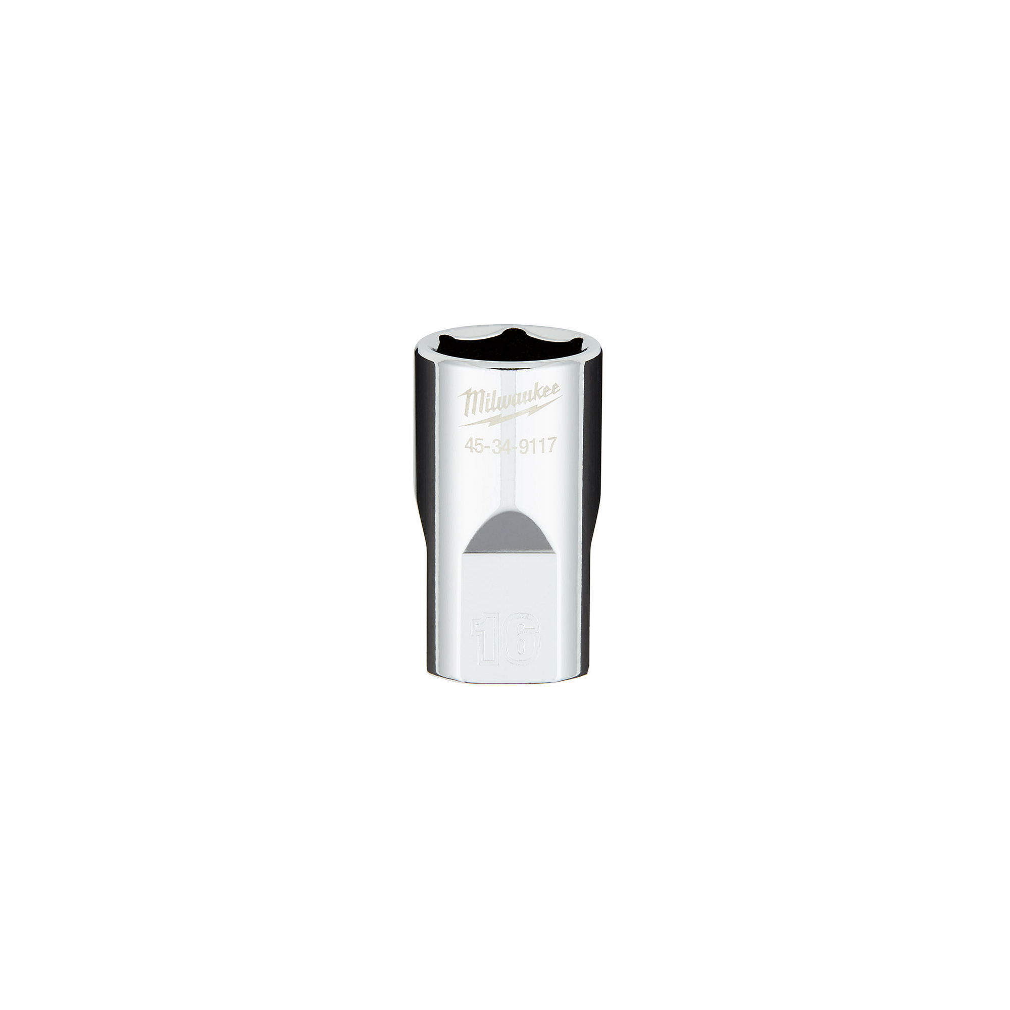 The MILWAUKEE® 1/2″ Drive 16mm Metric 6-Point Socket with FOUR FLAT™ Sides was designed from the ground up to be part of the most versatile socket family. The 1/2″ drive sockets are wrench-ready and feature an innovative design with four parallel flat sides to deter rolling. Metric socket sizes are stamped into the flats for better visibility. Optimized socket geometry helps reduce bolt rounding and stripping.
