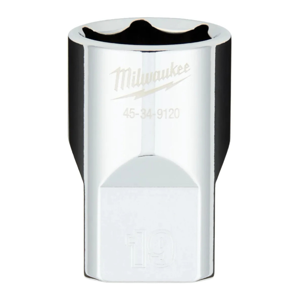 Milwaukee 45-34-9120 1/2" Drive 19MM Metric 6-Point Socket with FOUR FLAT™ Sides
