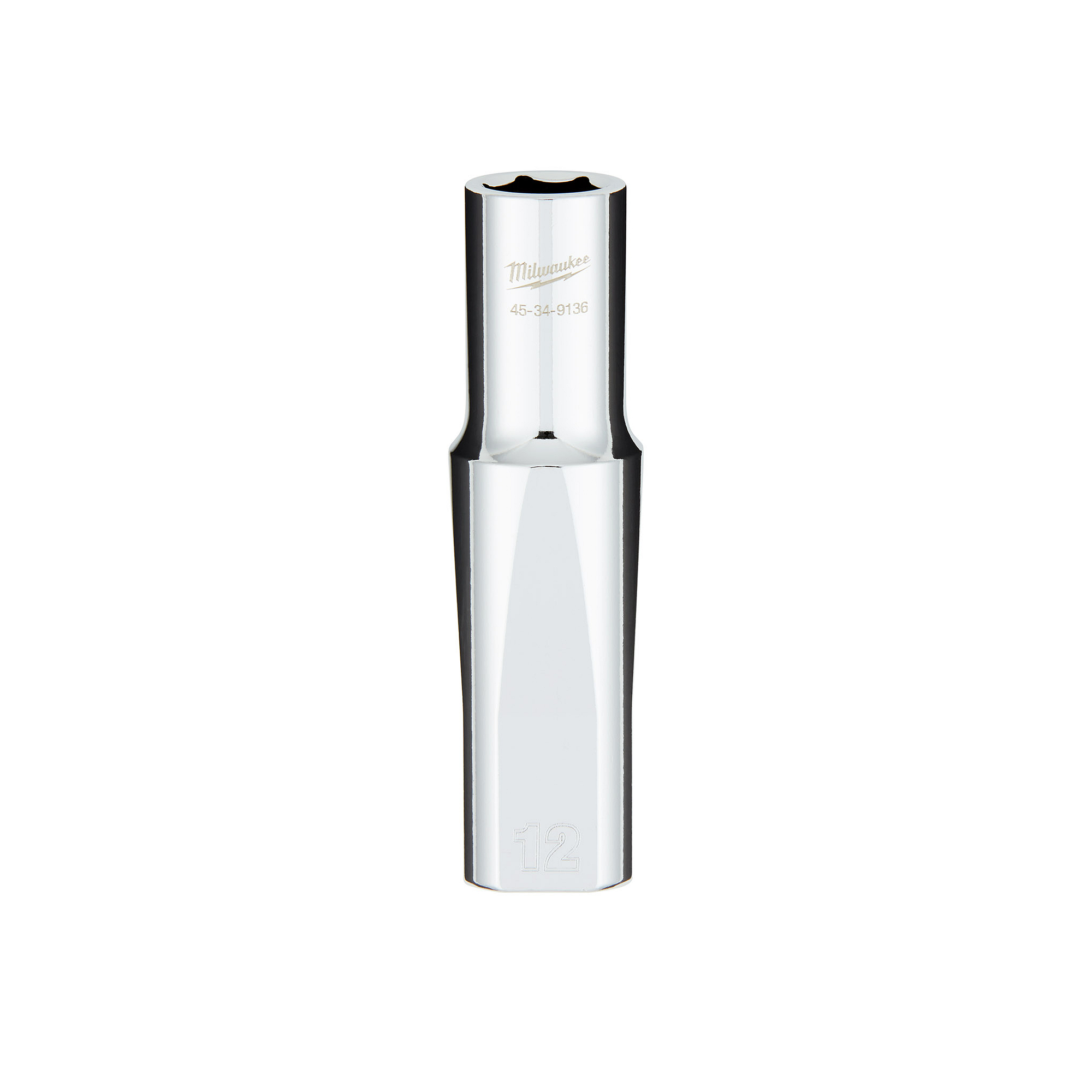 The MILWAUKEE® 1/2″ Drive 12mm Metric 6-Point Deep Socket with FOUR FLAT™ Sides was designed from the ground up to be part of the most versatile socket family. The 1/2″ drive sockets are wrench-ready and feature an innovative design with four parallel flat sides to deter rolling. Metric socket sizes are stamped into the flats for better visibility. Optimized deep well socket geometry helps reduce bolt rounding and stripping.