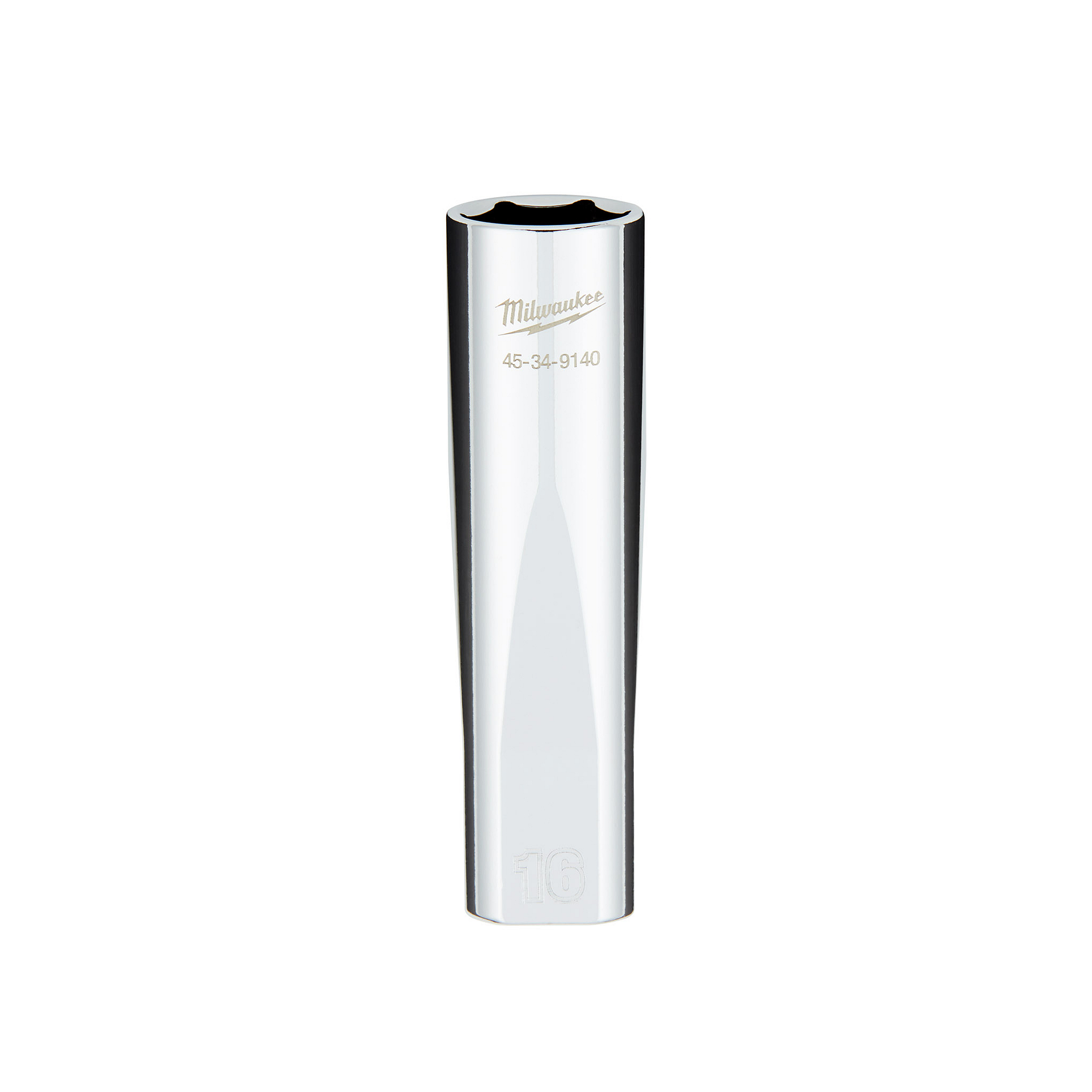 The MILWAUKEE® 1/2″ Drive 16mm Metric 6-Point Deep Socket with FOUR FLAT™ Sides was designed from the ground up to be part of the most versatile socket family. The 1/2″ drive sockets are wrench-ready and feature an innovative design with four parallel flat sides to deter rolling. Metric socket sizes are stamped into the flats for better visibility. Optimized deep well socket geometry helps reduce bolt rounding and stripping.