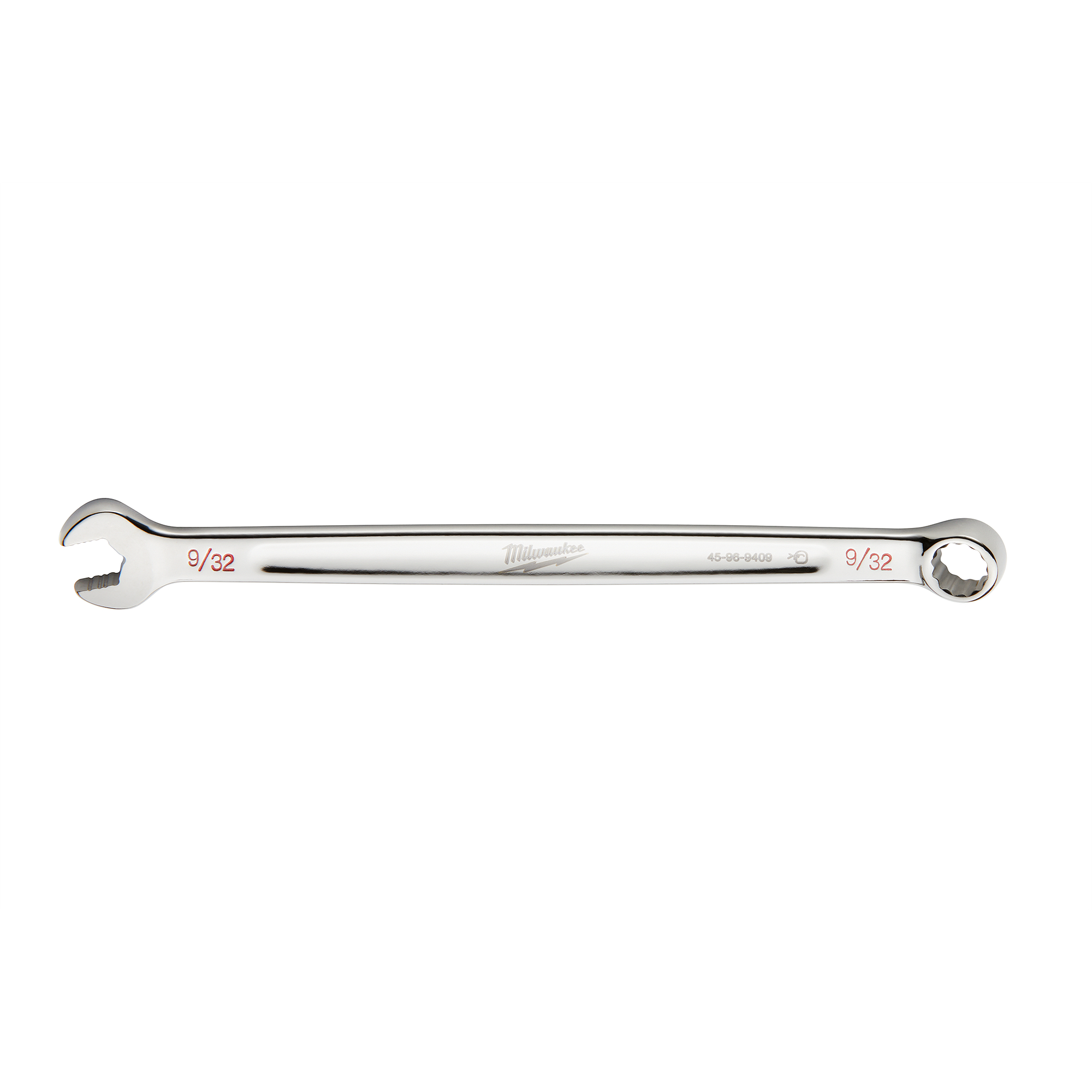 The MILWAUKEE® 9/32 in. SAE Combination Wrench delivers 25% more torque than smooth-faced wrenches with MAXBITE™ Open-End Grip. MAXBITE™ also reduces the rounding and stripping of nuts and bolts. This open end wrench is optimized for comfort and durability with an ergonomic I-Beam handle. Ink-filled size labels allow for easy size identification and quick distinction between SAE and metric sets. The Milwaukee 9/32 in. SAE Combination Wrench features a Lifetime Guarantee.