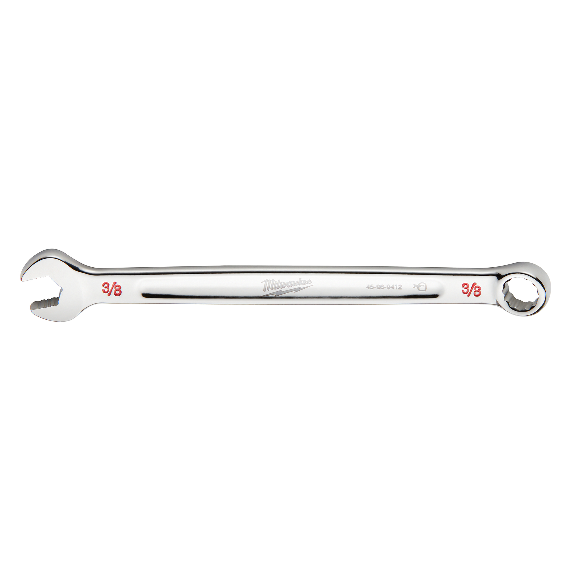 The MILWAUKEE® 3/8 in. SAE Combination Wrench delivers 25% more torque than smooth-faced wrenches with MAXBITE™ Open-End Grip. MAXBITE™ also reduces the rounding and stripping of nuts and bolts. This open end wrench is optimized for comfort and durability with an ergonomic I-Beam handle. Ink-filled size labels allow for easy size identification and quick distinction between SAE and metric sets. The Milwaukee 3/8 in. SAE Combination Wrench features a Lifetime Guarantee.