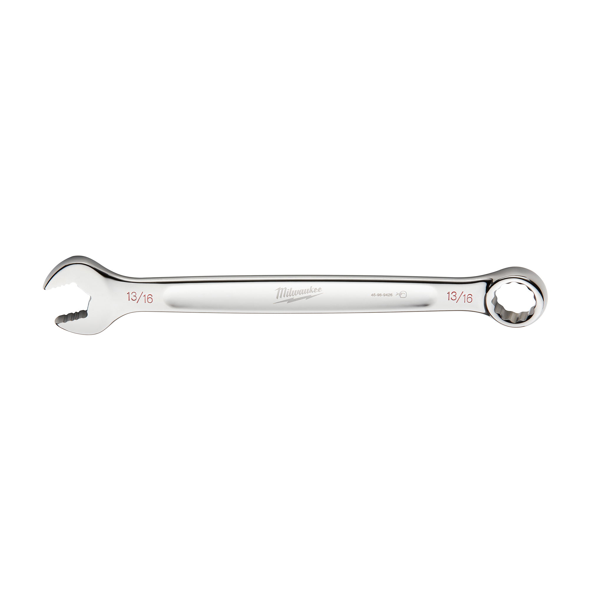 The MILWAUKEE® 13/16 in. SAE Combination Wrench delivers 25% more torque than smooth-faced wrenches with MAXBITE™ Open-End Grip. MAXBITE™ also reduces the rounding and stripping of nuts and bolts. This open end wrench is optimized for comfort and durability with an ergonomic I-Beam handle. Ink-filled size labels allow for easy size identification and quick distinction between SAE and metric sets. The Milwaukee 13/16 in. SAE Combination Wrench features a Lifetime Guarantee.