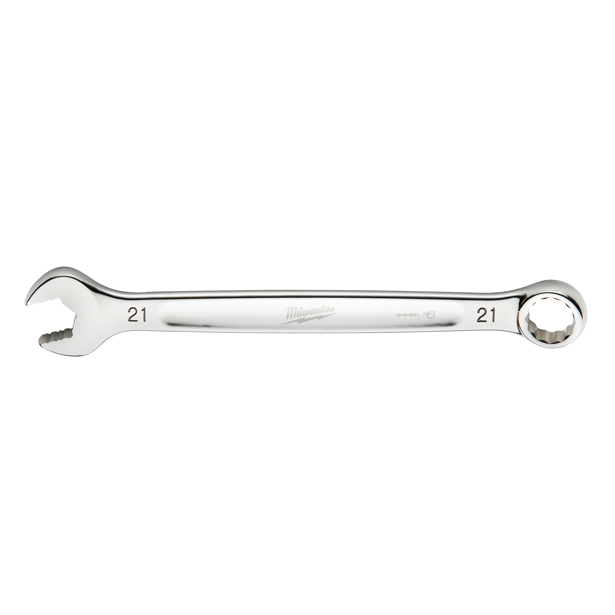 The MILWAUKEE® 21mm Metric Combination Wrench delivers 25% more torque than smooth-faced wrenches with MAXBITE™ Open-End Grip. MAXBITE™ also reduces the rounding and stripping of nuts and bolts. This open end wrench is optimized for comfort and durability with an ergonomic I-Beam handle. Ink-filled size labels allow for easy size identification and quick distinction between SAE and metric sets. The Milwaukee 21mm Metric Combination Wrench features a Lifetime Guarantee.