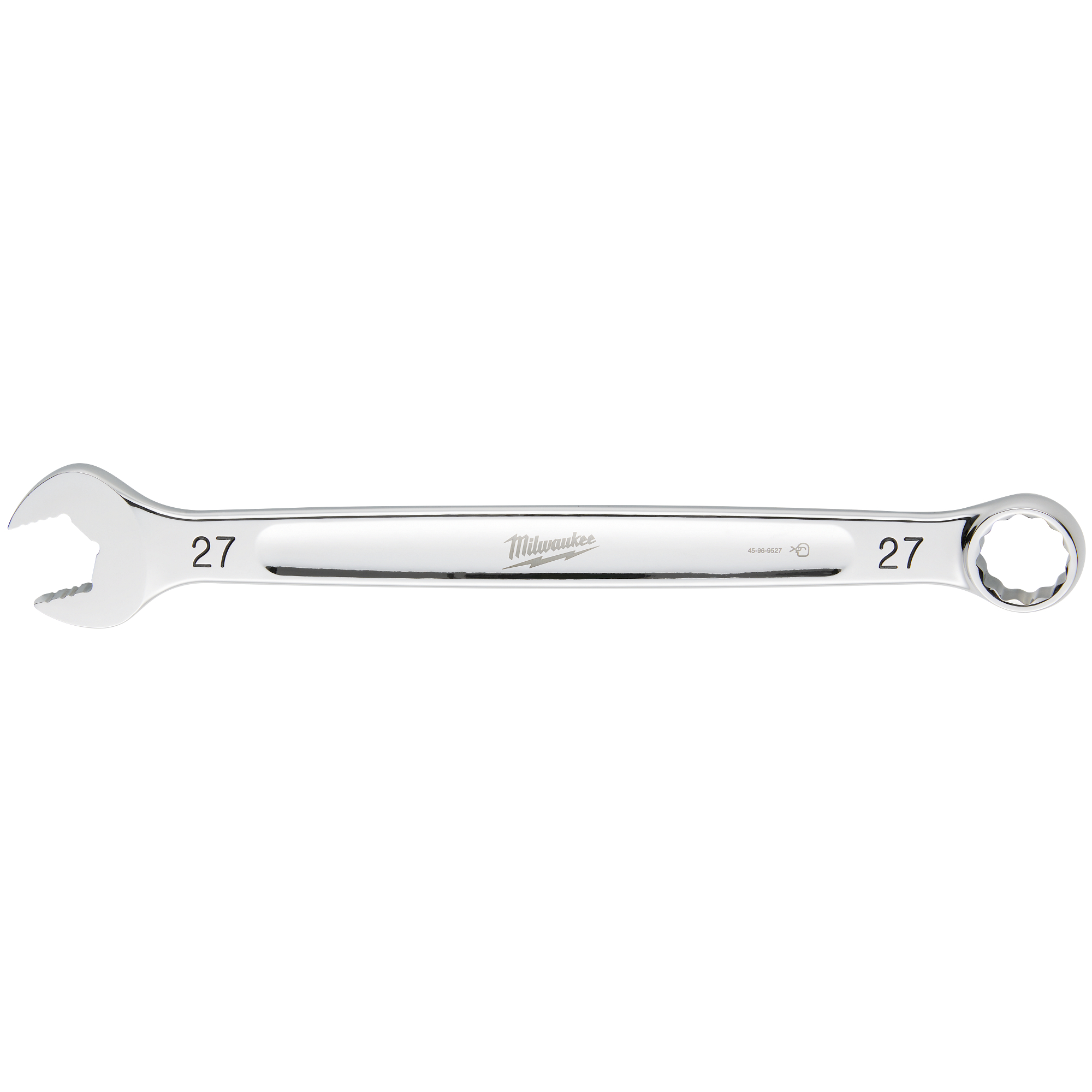 The MILWAUKEE® Metric Combination Wrenches provide you with 25% more torque than smooth-faced wrenches with our innovative MAXBITEâ„¢ Open-End Grip. In addition to increased torque, MAXBITEâ„¢ also reduces the rounding and stripping of nuts and bolts. The ergonomic wrench features an I-Beam handle for optimized comfort and durability. Ink-filled size labels allow for easy size identification and quick distinction between SAE and metric sets. The MILWAUKEE® SAE wrench sizes range from 1/4″ to 1-1/2″ and feature a Lifetime Guarantee.