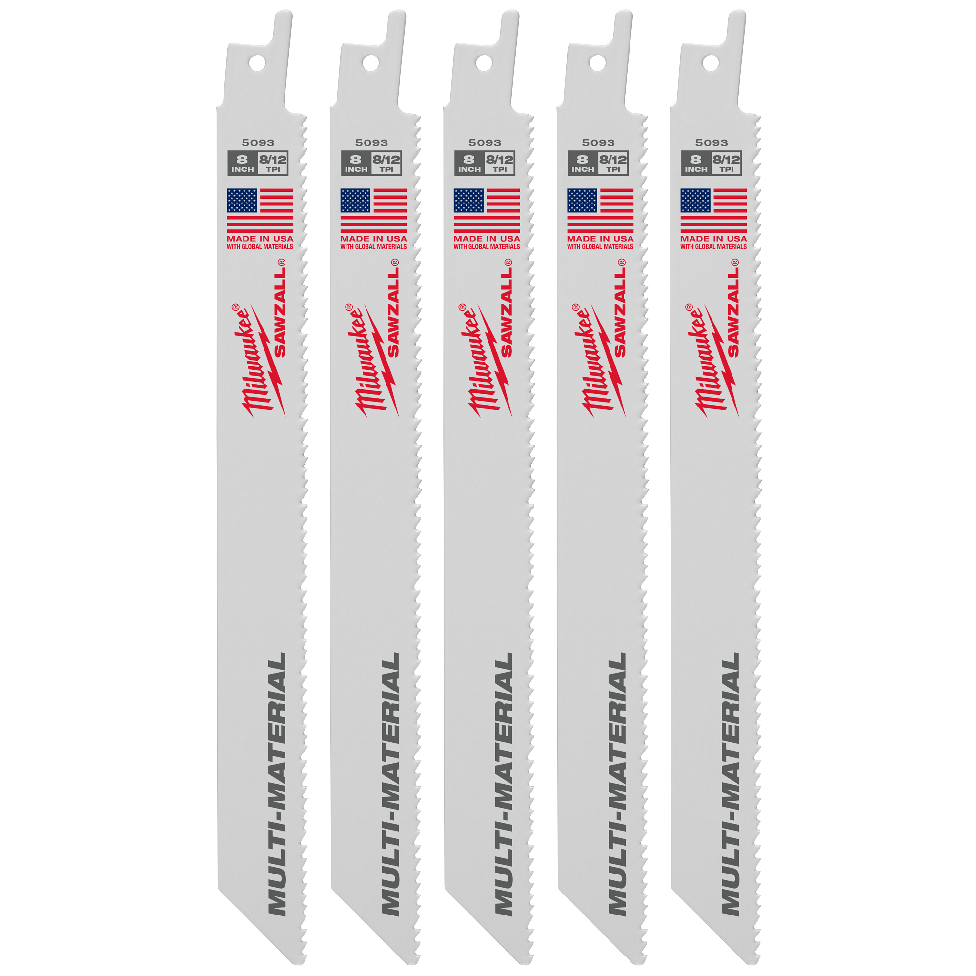 • (5) 8″ 8/12 TPI SAWZALL Blade for Multi-Material (5 PK) (48-00-5093)