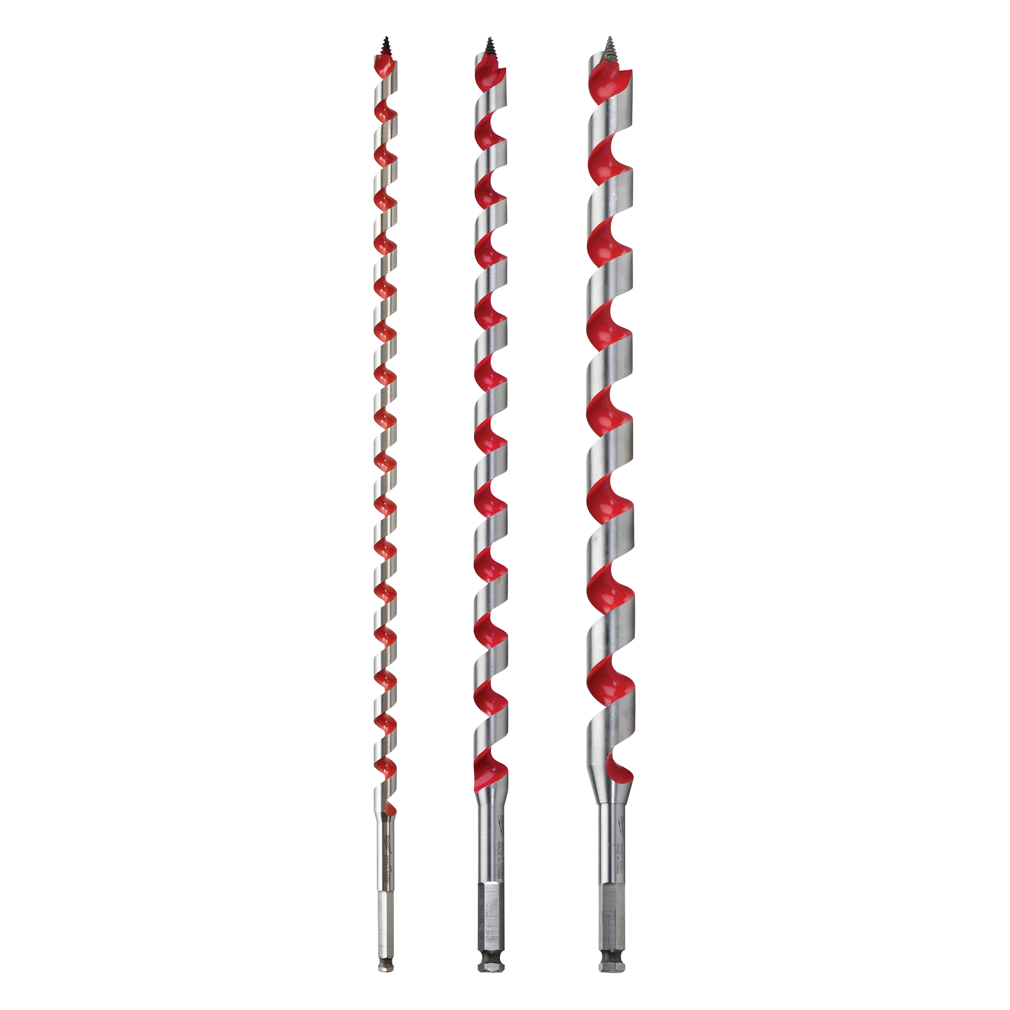 Milwaukee® auger bits are designed for electricians, plumbers, utilities and any trade requiring fast, clean holes in wood. The double wing spurs continually scribe the hole producing smooth holes without breakout. The flutes are coated, which produces a non-stick surface for fast and smooth chip ejection. The shanks are also impact rated for added durability and versatility no matter the trade.