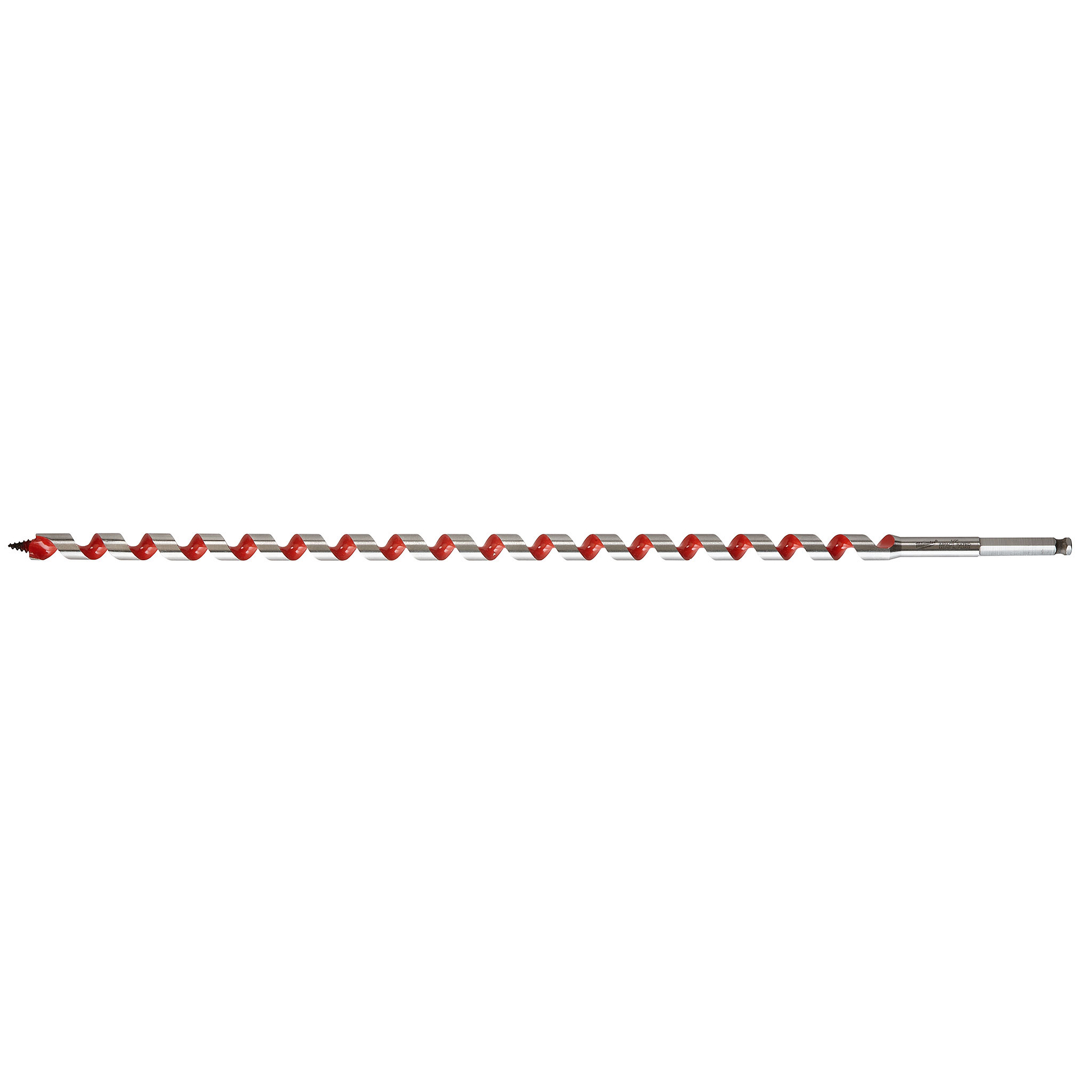 The Milwaukee® 1/2 in. x 18 in. Ship auger bit drills through up to 2X the nails of competitive auger bits without needing resharpening. Drill into clean or nail-embedded wood with confidence when installing Romex wire, PEX water lines, rebar, bolts, and rope in piers, playground equipment and landscaping. The flutes are wider for maximum chip removal, even in deep holes. The polished and coated flute finish means chips won’t stick to the bit, even when drilling in material that contains sap or glue. The through-center cutting design creates a more solid striking point against nails compared to the competitions’ ahead-of-center and behind-center designs. The longer shaft length makes it easy to drill deeper or overhead without an extension.