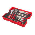 The MILWAUKEE® 9pc Pliers & Wrench Set features TORQUE LOCK™ Pliers with faster setup and more locking force. The unique thumb screw provides better geometry for hand force and provides clearance to generate more torque. The included adjustable wrenches have jaws that won’t back off due to the design of the proprietary adjustment screw. The comfort-grip straight jaw pliers incorporate exposed metal handles and a precision ground pliers head, allowing you to ream pipe and punch electrical knockouts easily. The durable reinforced tray features high-contrast EVA foam and easy-to-read size labeling for quick tool identification. The trays are designed for use in PACKOUT™ Drawer Tool Boxes (48-22-8444, 48-22-8443, 48-22-8442, 48-22-8447). The pliers and adjustable wrenches are all backed by the Milwaukee® Limited Lifetime Warranty.