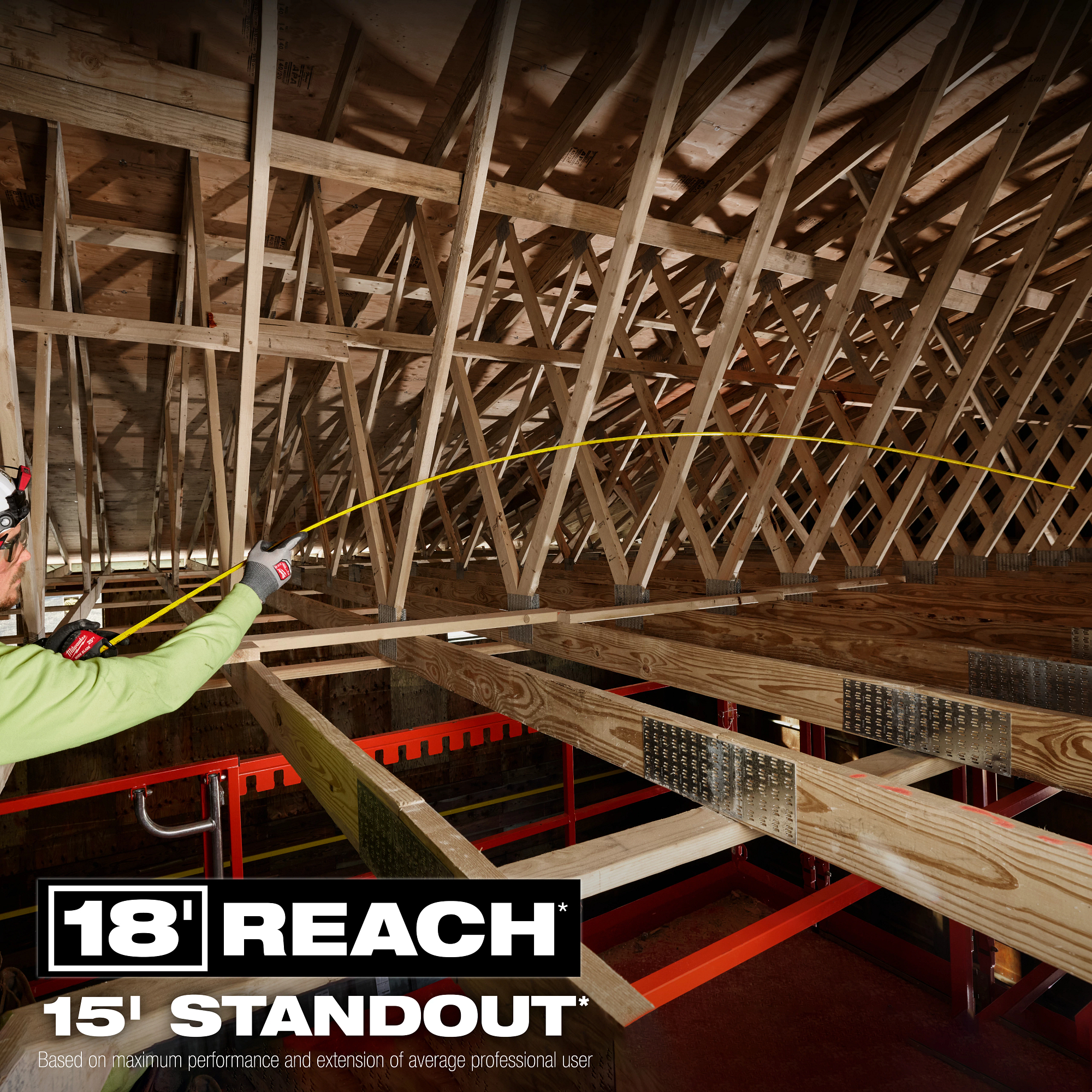 The MILWAUKEE® 40ft Wide Blade Tape Measure delivers the longest reach and straightest standout in the industry. 18’ of Reach and 15’ of Standout allow you to take long measurements on your own and reach further on the jobsite. The Wide Blade Tape Measure features a finger stop for quick, controlled blade retraction and double-sided anti-tear coating that reinforces the first 6” of the blade. This tape measure is equipped with a large hook for improved top and bottom hook grab onto common jobsite materials and double-sided printing for measuring in different orientations. Built to withstand the jobsite, this tape has a fully reinforced impact resistant body and a wire form belt clip to reduce pocket tearing.