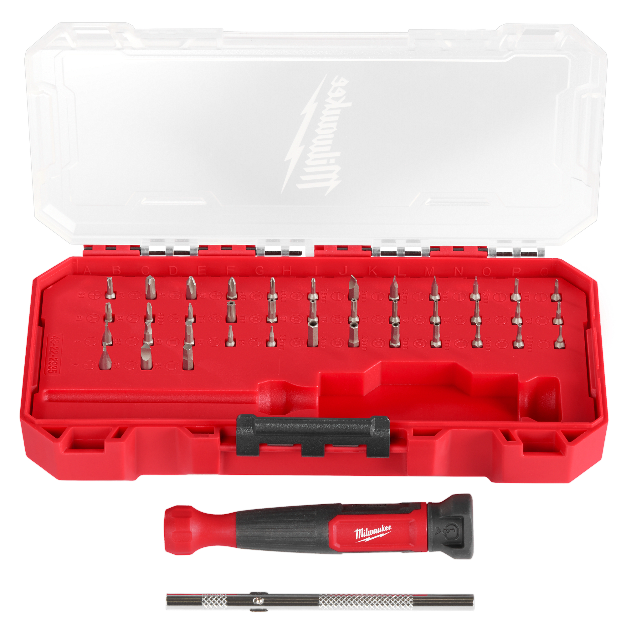 The MILWAUKEE® 39-in-1 Precision Multi-Bit Screwdriver is more versatile and has better control for driving and precise tuning. The multi-bit driver features a comfortable, non-slip grip handle for maximum control. Designed with a dual length shank, the multi-bit driver offers users an extended reach for hard to access fasteners. This multi-bit driver also features a 360-degree rotating back cap which provides greater control for speed and precision on the jobsite. The chrome-plated bit holder provides rust protection and reduces wear from elements on the jobsite. The Milwaukee® 39-in-1 Precision Multi-Bit Screwdriver is backed by Milwaukee’s Limited Lifetime Warranty.