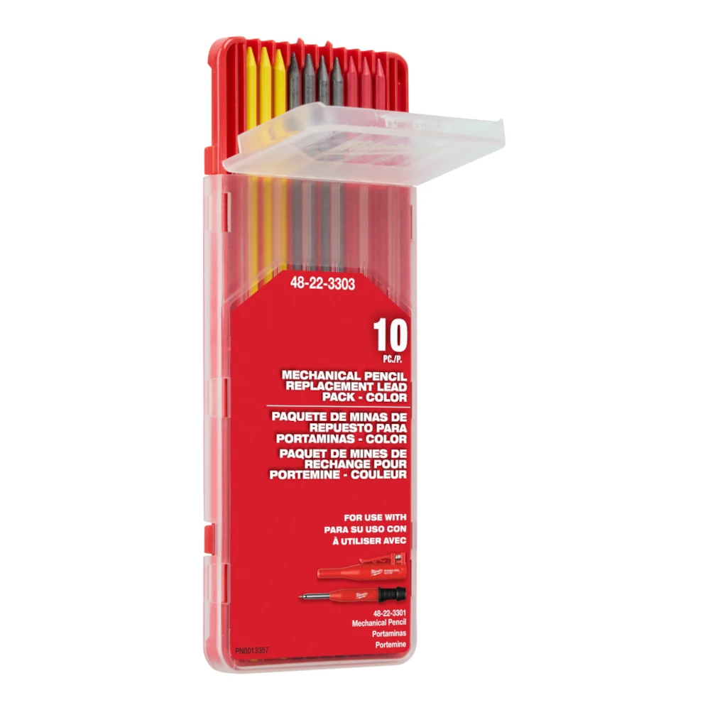 The Milwaukee 10pc. Color Lead Pack is designed to pair perfectly with the Milwaukee Mechanical Pencil, giving you an easy, reliable way to keep your pencil loaded and job-ready. With easier sharpening and better access, this lead pack helps you stay productive on the move—whether you’re framing, finishing, or marking layouts.