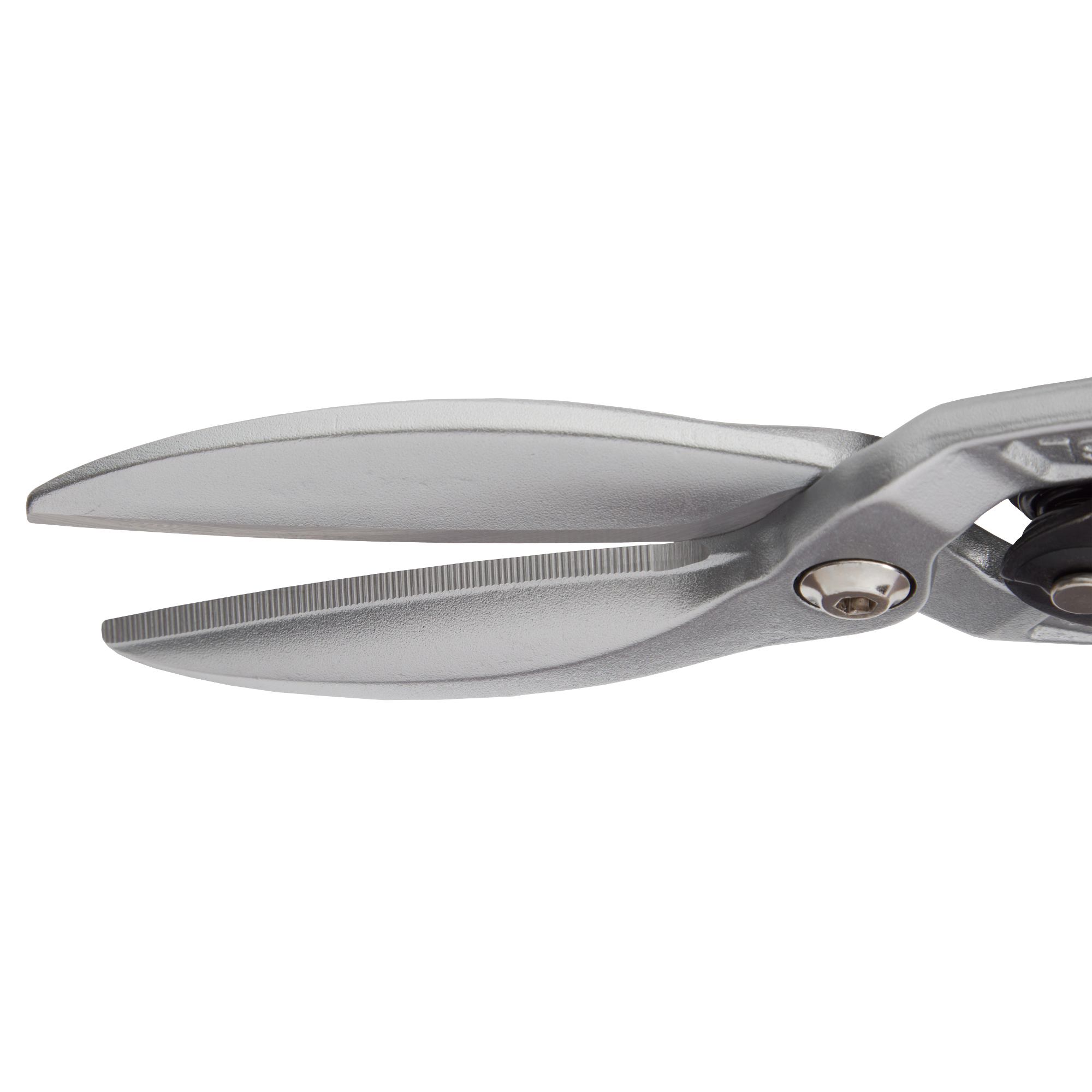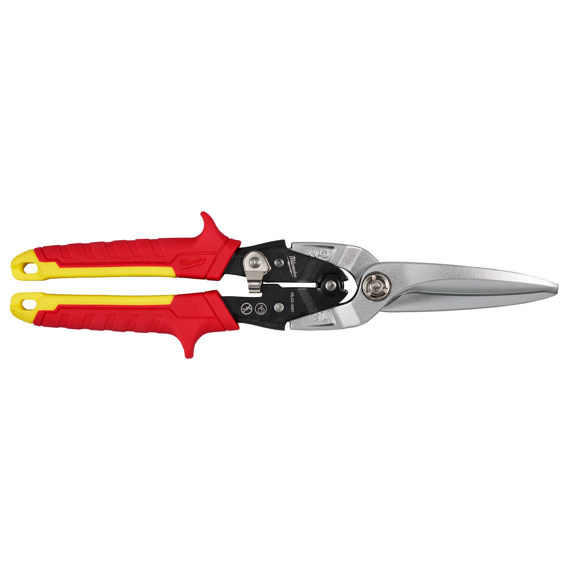 MILWAUKEE® Long Cut Aviation Snips are built for long life and clean cuts. Forged blades with laser-hardened edges are durable and deliver long life. Sharp, serrated blades provide smooth and clean cuts. The handles are designed to deliver easy, low-effort cutting. BOLT LOCK™ ensures the blades won’t loosen and chrome plating provides rust protection. The color-coded handles allow for easy identification on the job. The metal lock secures the tool for storage and is easily operated with one hand. The 3″ long cut blade is ideal for long straight cuts.