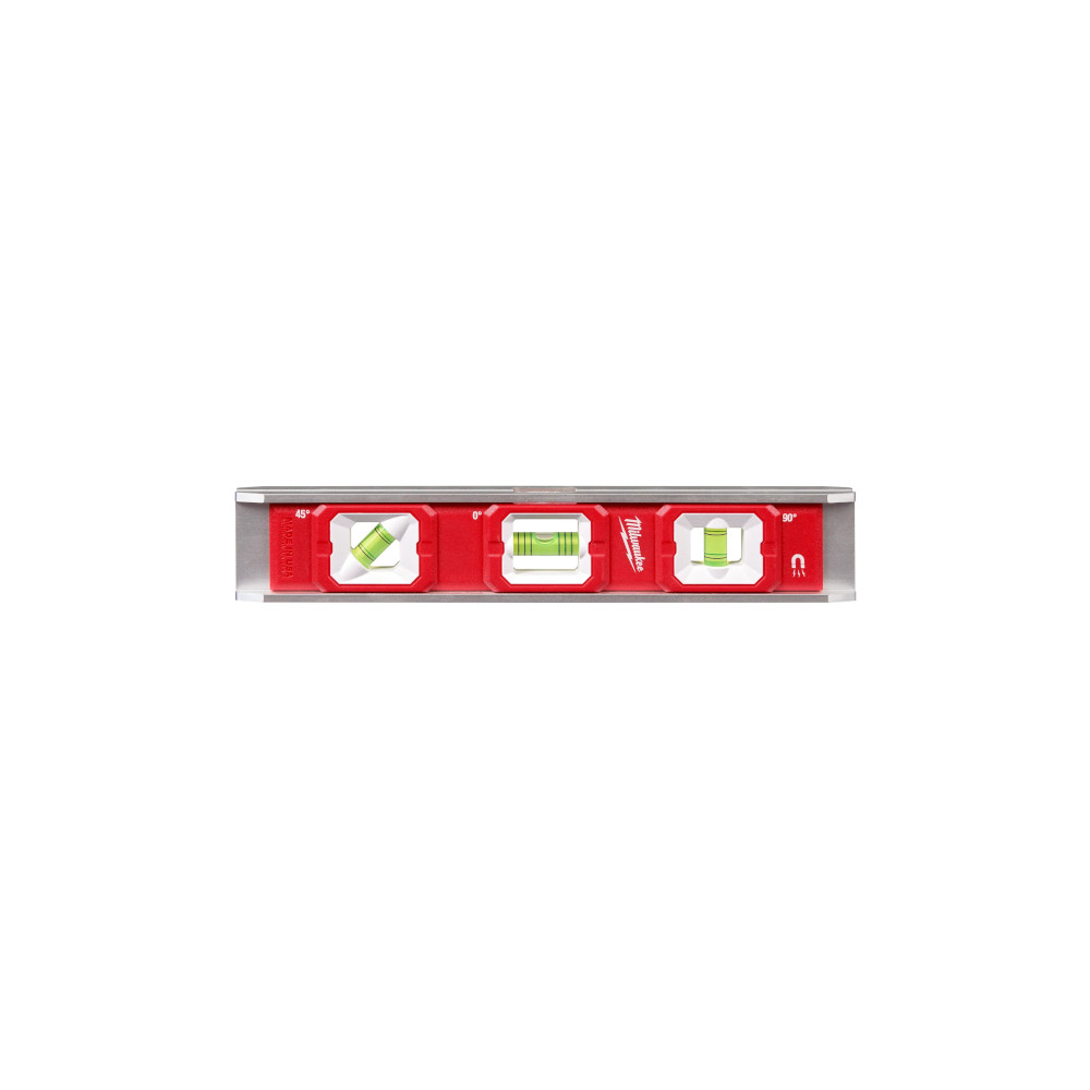 Our 10” Torpedo Level has high contrast surrounds, which delivers more vial visibility when leveling surfaces or setting pitch in pipe. The level also has a durable aluminum frame helping protect it from drops and harsh jobsite conditions. The 3 rare earth magnets and V-grooves make working with conduit and metal material easier. The level has 3 vials to accurately measure 0°, 45°, and 90° when leveling surfaces such as trim, shelving, windows, and outlets. The Milwaukee® 10” Torpedo Level is backed by a Limited Lifetime Warranty.