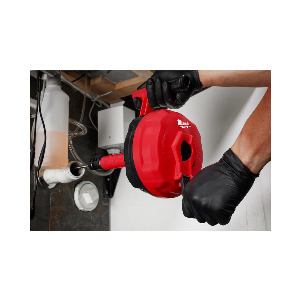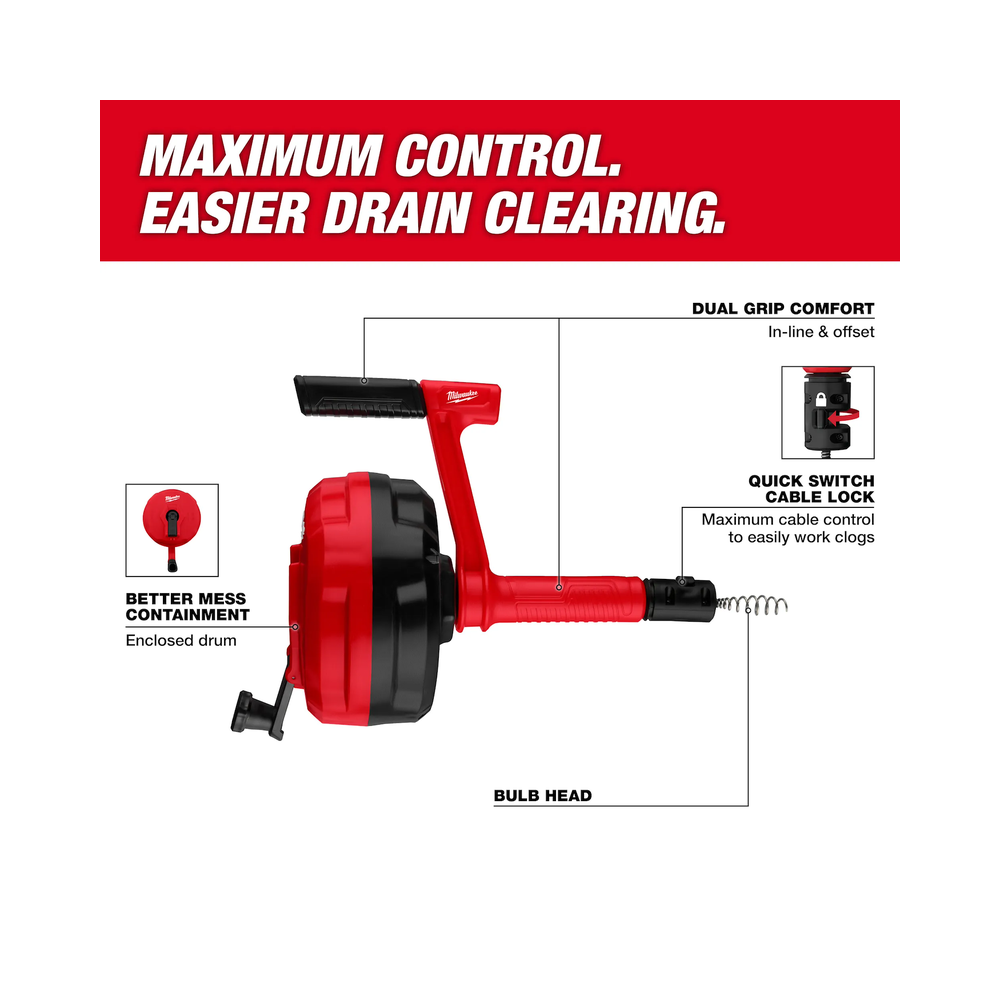 Our 25′ Hand Auger provides maximum control for easier drain clearing. The quick switch cable lock allows the cable to be easily secured delivering increased control when attacking blockages. The dual grip design is more comfortable and gives the option for an in-line or offset grip. With an enclosed drum, this auger offers better mess containment during clearing applications to reduce cleanup time. The 25′ Hand Auger is backed by Milwaukee’s Limited Lifetime Warranty.