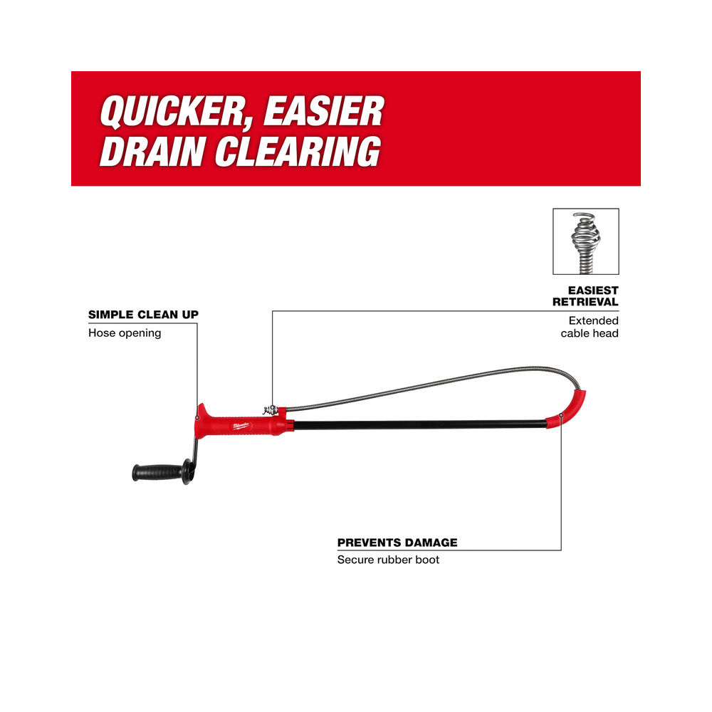 Our 3′ Toilet Auger provides quicker and easier drain clearing in tough applications. The secure rubber boot helps prevent damage to porcelain fixtures. With an extended cable head, this auger allows for the easiest stoppage retrieval. The hose opening offers a quick and easy cleanup. The 3′ Toilet Auger is backed by Milwaukee’s Limited Lifetime Warranty.