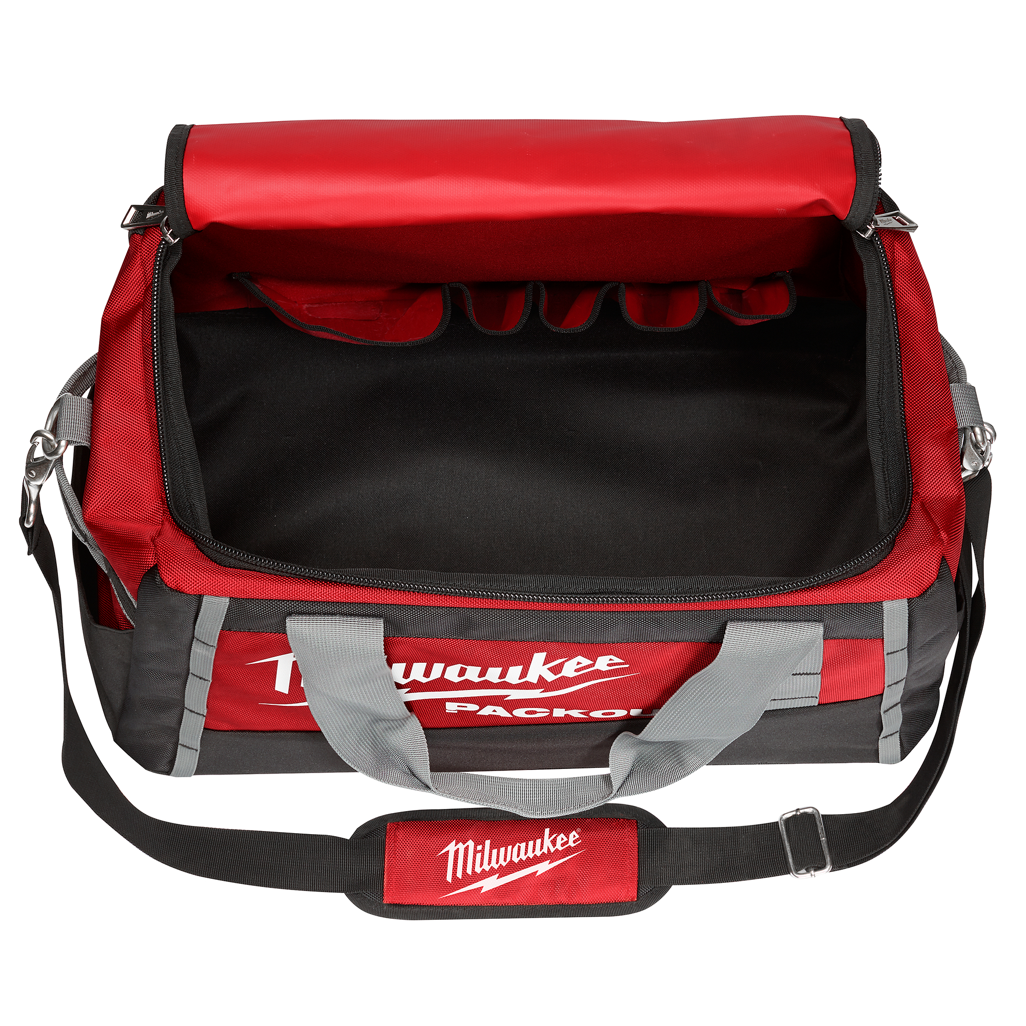 Part of the industry’s most versatile and most durable modular storage system, Milwaukee’s 20 in. PACKOUTâ„¢ tool bag features an impact resistant molded base that fully integrates with all PACKOUTâ„¢ system components. Constructed with 1680D ballistic material and all metal hardware, the 20 in. tool bag is designed for ultimate durability. Additionally, the 20 in. tool bag features versatile carrying with a cushioned shoulder strap, top handles, and side handles for easy transport of power tools, hand tools, and accessories. Overall, the 20 in. tool bag provides accessible storage and connectivity with all PACKOUTâ„¢ products.