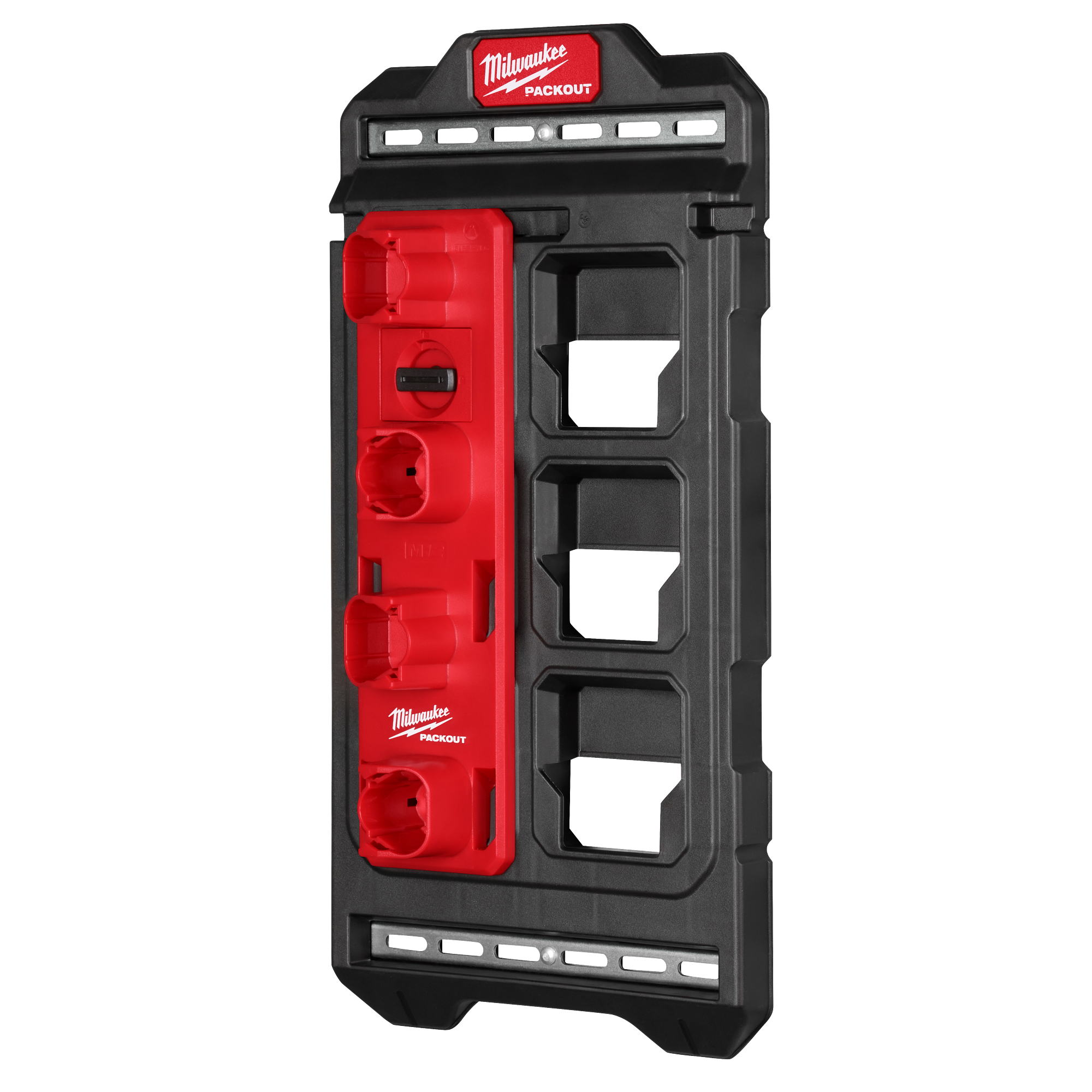The MILWAUKEE® PACKOUT™ M12 Battery Rack provides the most secure mounting when paired with PACKOUT™ Wall Plates. The PACKOUT™ M12 Battery Rack features clip-in battery storage that keeps batteries securely held in place. Connectivity with all PACKOUT™ solutions enables you to fully customize your shop. This M12 Battery Rack is optimized to store up to 4 M12 batteries of any size. MILWAUKEE® PACKOUT™ is the industry’s most versatile and durable modular storage system.