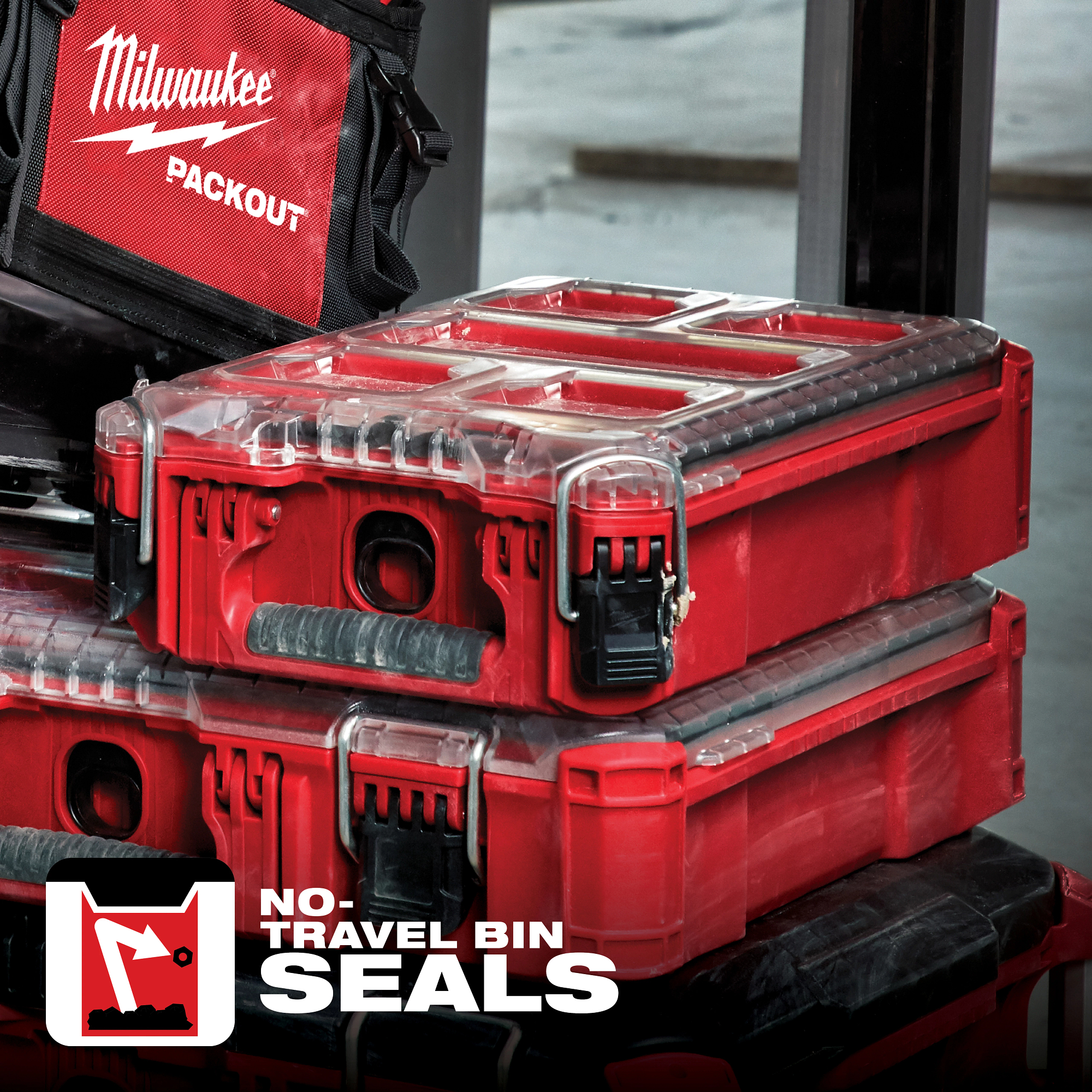 Part of the industry’s most versatile and most durable modular storage system, the Milwaukee PACKOUT™ tool box is constructed with impact resistant polymers and metal reinforced corners to provide up to 75 lbs of weight capacity and ultimate durability in harsh jobsite conditions. Featuring an IP65 rated weather seal to keep out rain and jobsite debris, and integrated organizers bins, the Milwaukee PACKOUT™ tool box is the fully compatible with all Milwaukee PACKOUT™ modular storage products.