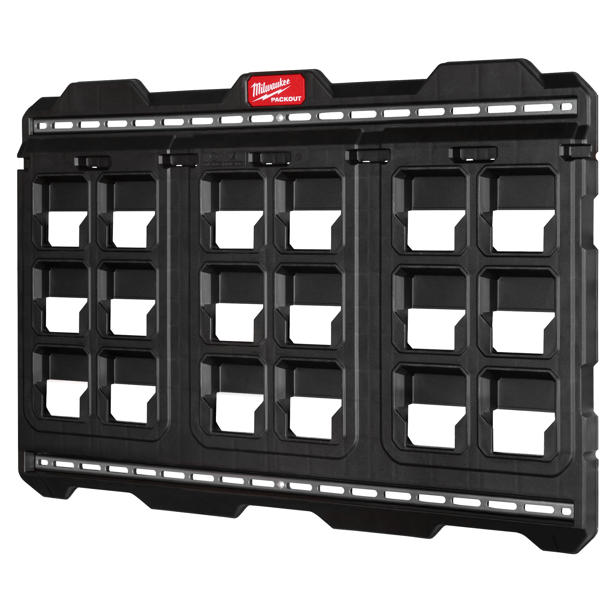 The MILWAUKEE® PACKOUTâ„¢ Large Wall Plate features quick-alignment tabs to make installing rows and columns of multiple wall plates easier. This Large Wall Plate is constructed with metal-reinforced mounting tracks and impact-resistant polymers that ensure secure mounting in the shop, transit, and site environments. The Large Wall Plate has a 150lb weight capacity when mounted in the shop, and a 75lb when mounted in vehicles. As part of the PACKOUTâ„¢ Modular Storage System, the PACKOUTâ„¢ Large Wall Plate allows you to customize your storage system and keep your storage solutions organized. MILWAUKEE® PACKOUTâ„¢ is the industry’s most versatile and durable modular storage system.