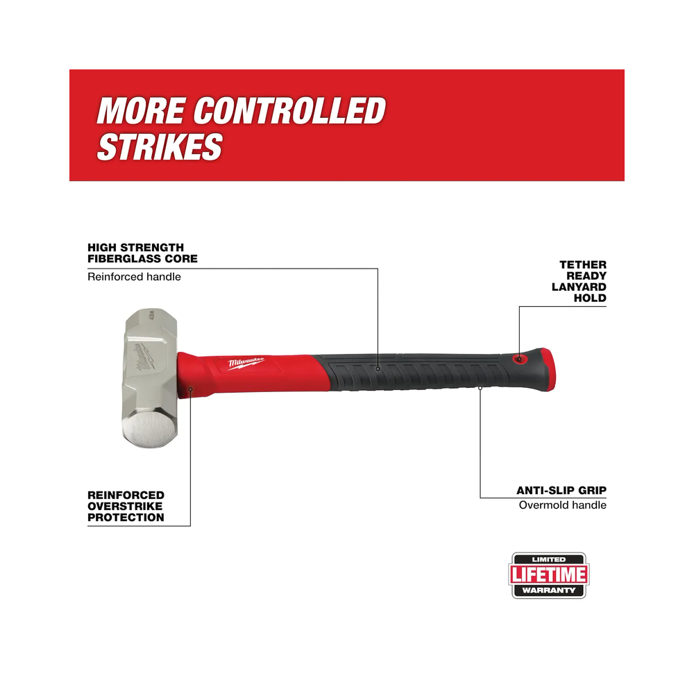 Our 4lb Fiberglass Engineer Hammer is designed for more controlled strikes. This hammer features an anti-slip grip and overmold handle providing more control when driving stakes and pins. It is also designed with a high-strength fiberglass handle and reinforced overstrike protection delivering durability in concrete or masonry demolition applications. The hammer is also tether-ready featuring a reinforced lanyard hole.
