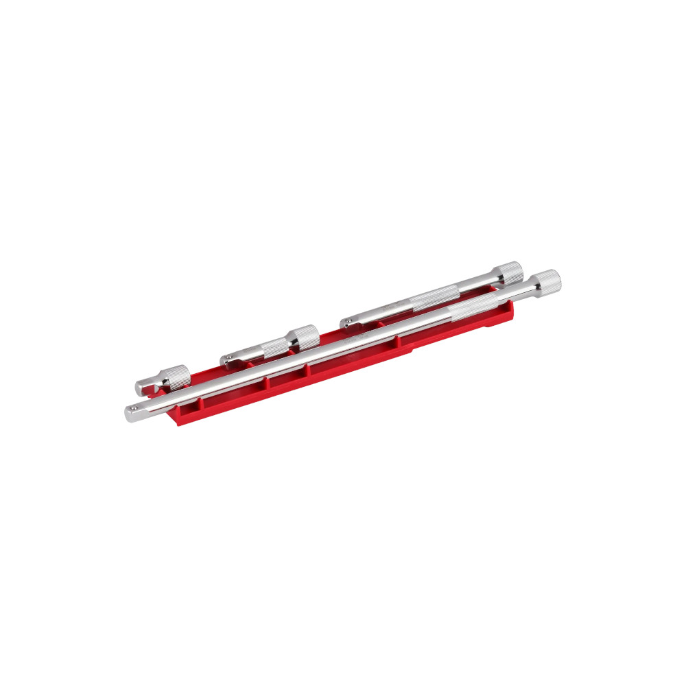 The extensions in this 4 piece set feature the largest knurling surface, offering the most control. Each extension has knurling on the female drive end to help when hand-tightening fasteners or working with oily materials. Additionally, select extensions in the set have knurling on the shaft for more control. The set includes a durable compact storage rack designed to optimize drawer space for long-term use. Chrome plating offers corrosion and rust protection. All Milwaukee® Mechanics Hand Tools are backed by a lifetime guarantee.