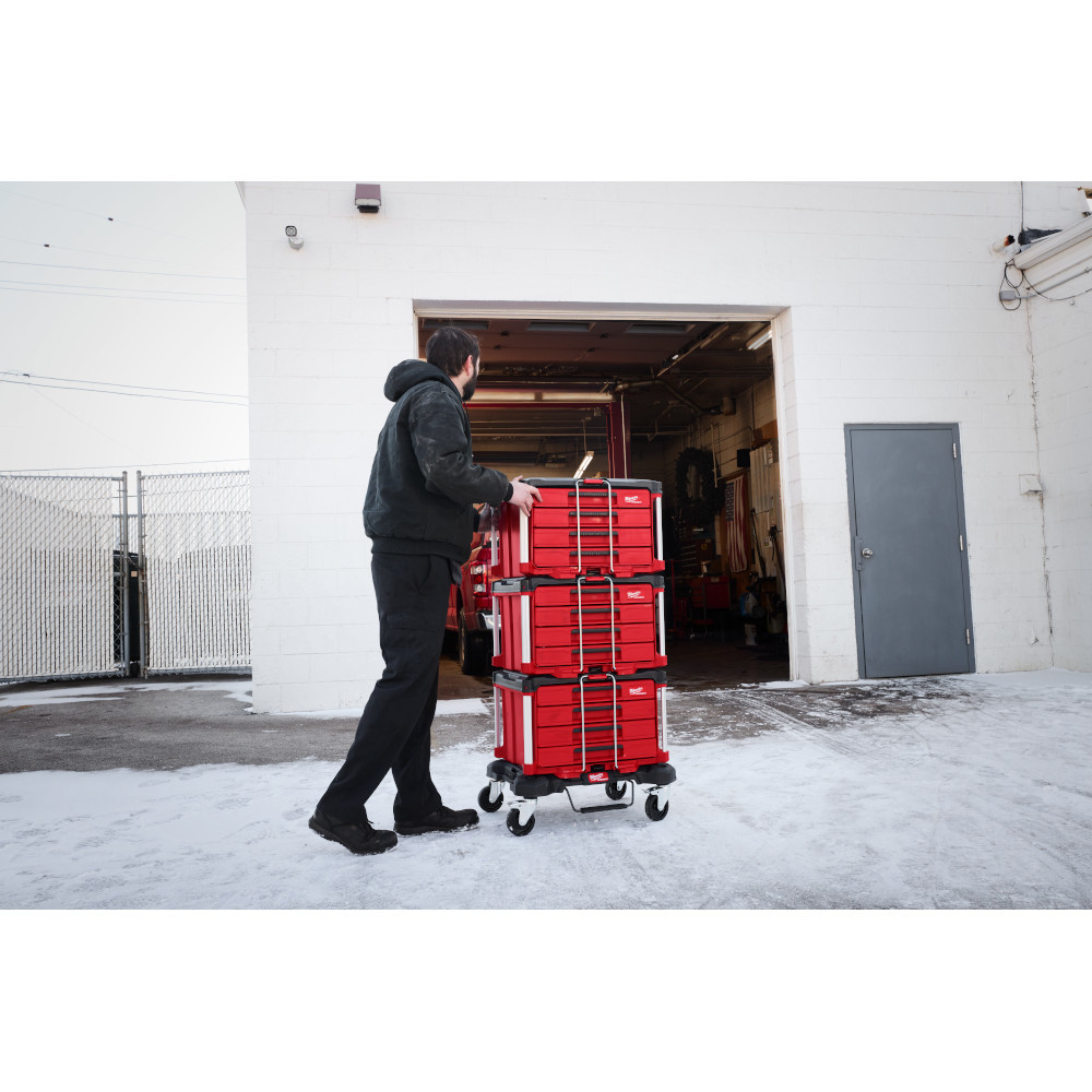 The MILWAUKEE® 60pc Metric & SAE Combination Wrench Set w/ PACKOUT™ 4-Drawer Tool Box features ratcheting wrenches with 2.5° of arc swing and 144 ratcheting positions for better access in tight spaces. The durable double-stacked pawls in the ratcheting mechanism offer the longest ratchet life and improved access.