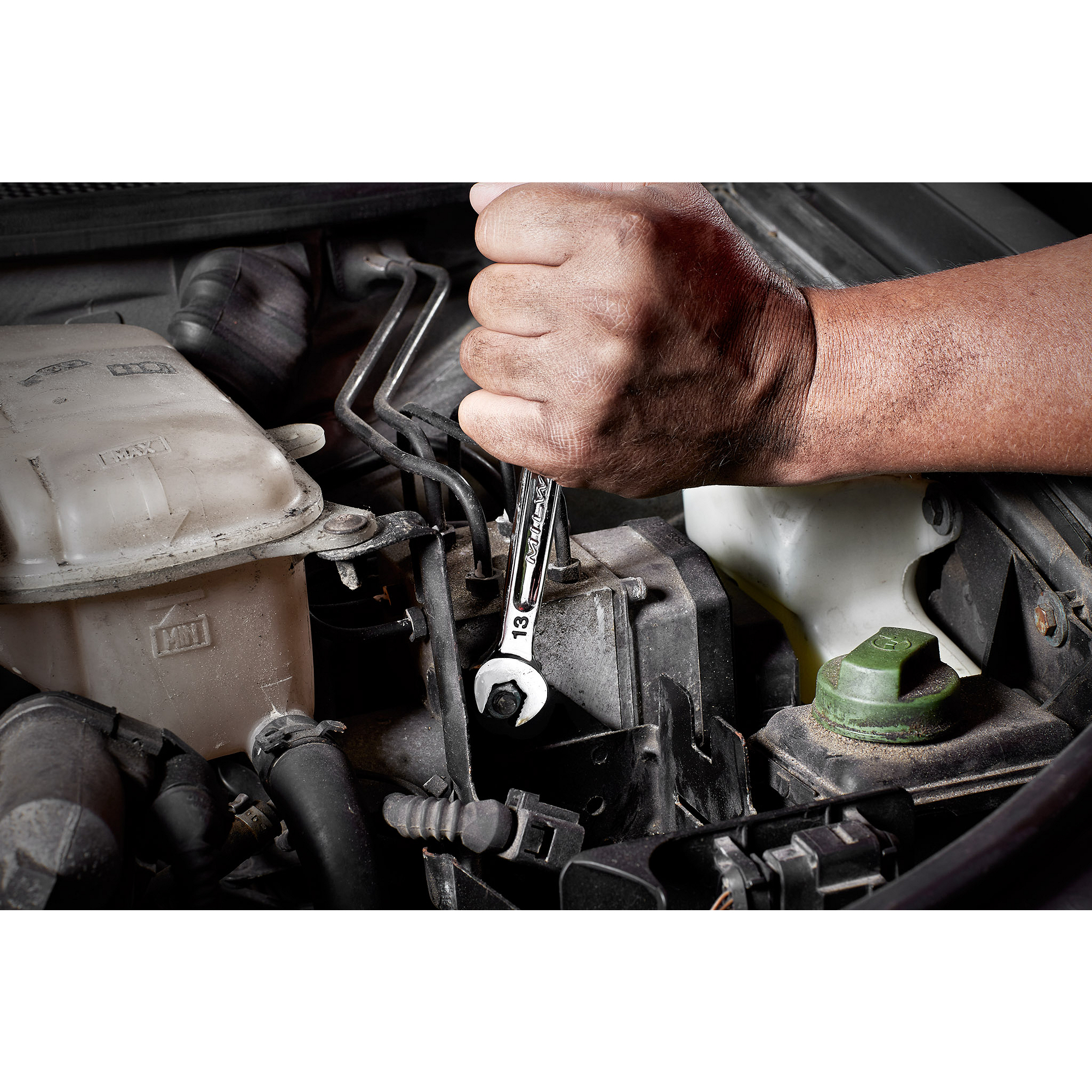 The MILWAUKEE® 11 Piece Metric Combination Wrench Set delivers maximum torque and ultimate user comfort. The MILWAUKEE® MAX BITE™ Open-End Grip improves the wrench’s grip on nuts and bolts, and the geometry reduces rounding and stripping. Milwaukee MAX BITE™ offers 25% more torque than competitive wrench designs. The Comfortable I-Beam Handle Design allows superior user comfort, even while applying high torque. Milwaukee wrenches feature ink-filled size labels for easy size identification and the quick distinction between SAE and metric sets. The Milwaukee 11pc kits come in a storage tray designed for long-term storage, keeping your tool chest organized. Standing behind their products, Milwaukee offers a Lifetime Guarantee on all Milwaukee Combination Wrench Sets.