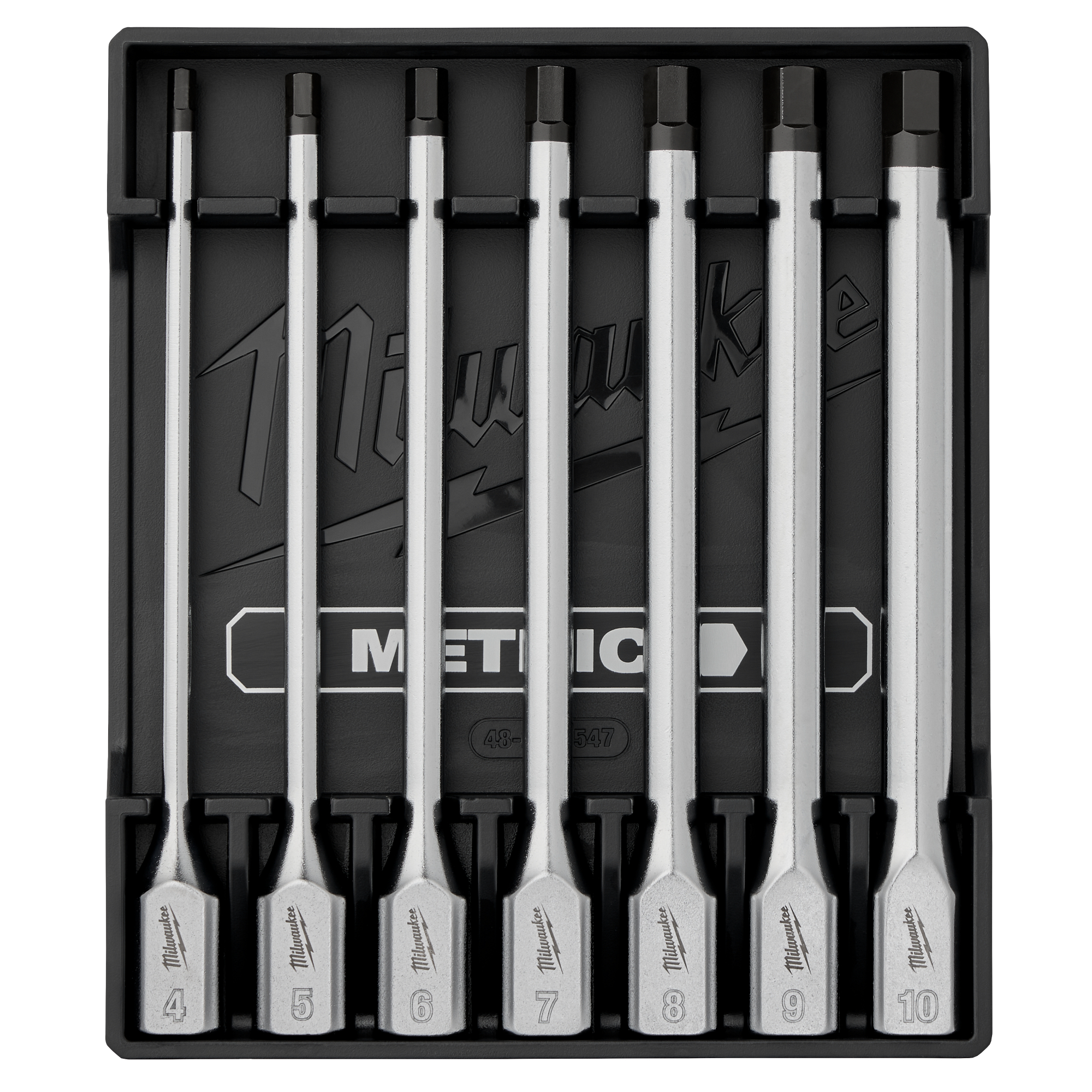 The MILWAUKEE® 7pc 3/8″ Drive Metric Long Hex Bit Socket Set with FOUR FLAT™ sides is designed from the ground up to be part of the most versatile socket family. Milwaukee® long reach sockets feature an innovative design with four parallel flat sides, which deter rolling and are wrench compatible. The 6″ length and slim profile of these sockets provide the best access in tight spaces. The one-piece socket design offers improved durability compared to two-piece designs by eliminating the risk of the bit separating from the socket base. The laser-engraved size markings provide easy identification, and chrome plating offers rust and corrosion protection. This set also includes a storage tray for better organization. All Milwaukee® sockets are backed by a Lifetime Guarantee.