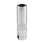 The MILWAUKEE® 3/8″ Drive 14mm 6-Point Spark Plug Socket With Rubber Insert features a durable dual-material rubber retainer designed to maintain a more secure fit within the socket while securely holding onto spark plugs to avoid dropping or damaging. A precision knurling on the outside of the socket allows for better control when hand tightening or loosening. Both the socket and retainer withstand harsh chemicals commonly found in the garage. Stamped size markings make it easy to identify the size of the socket. The external hex at the base of the socket fits a 11/16” wrench for added control. Milwaukee® Spark Plug Sockets are backed with a Lifetime Guarantee.