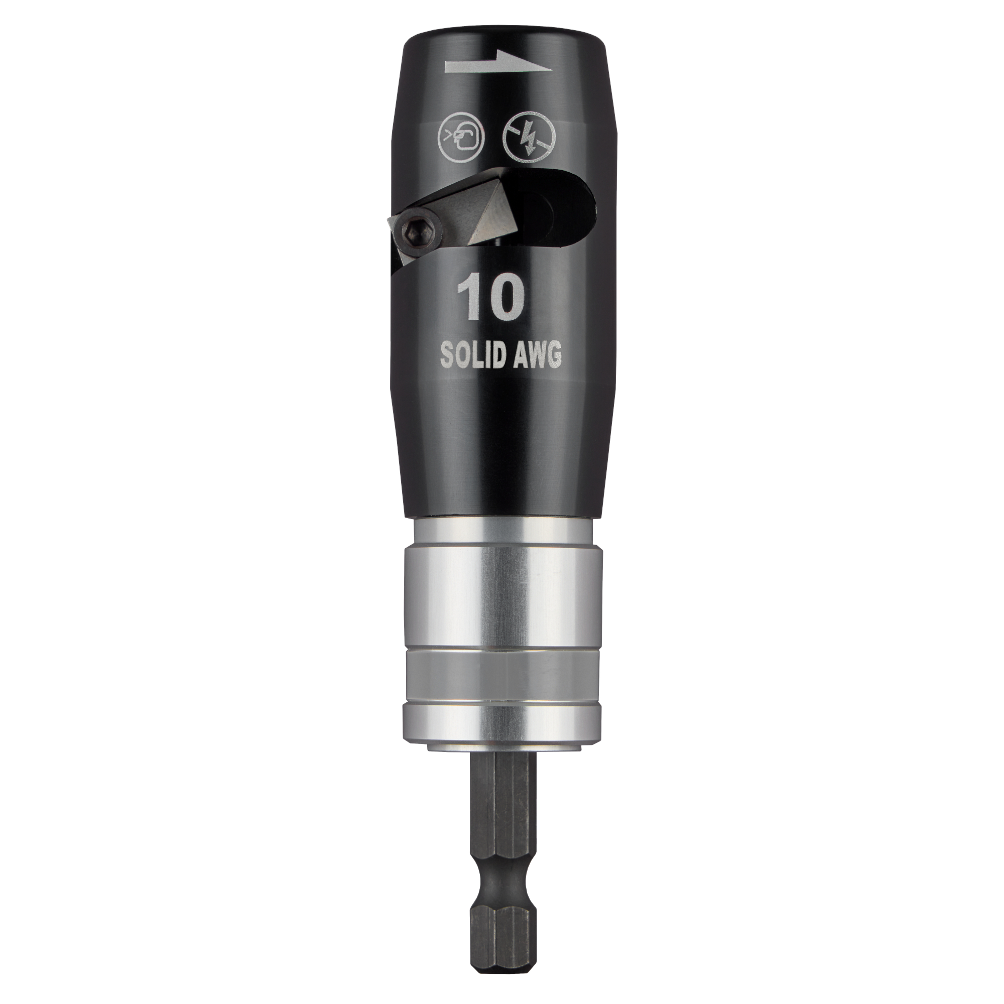 The MILWAUKEE® Solid 10 AWG Wire Strippers deliver fast, clean stripping for 10 solid wire. The adjustable shank features convenient strip length markings, allowing for accurate, consistent strips ranging from ½” to 1-1/2”. The wire strippers feature color-coded rings for quick and easy wire gauge identification. The ¼” hex shank allows for use with Impact Drivers.