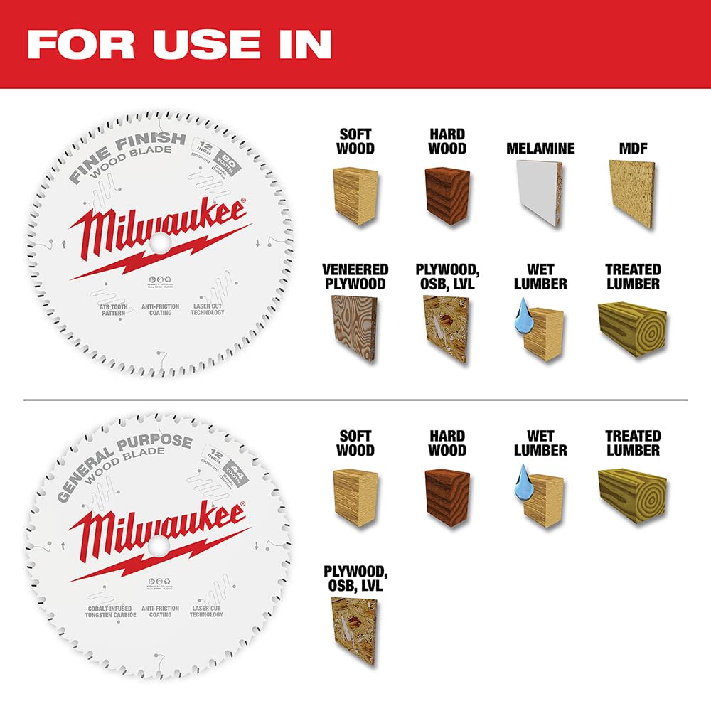 Milwaukee 48-40-1232 12" x 44TH & 12" x 80TH Circular Saw Blade, 2 Pack