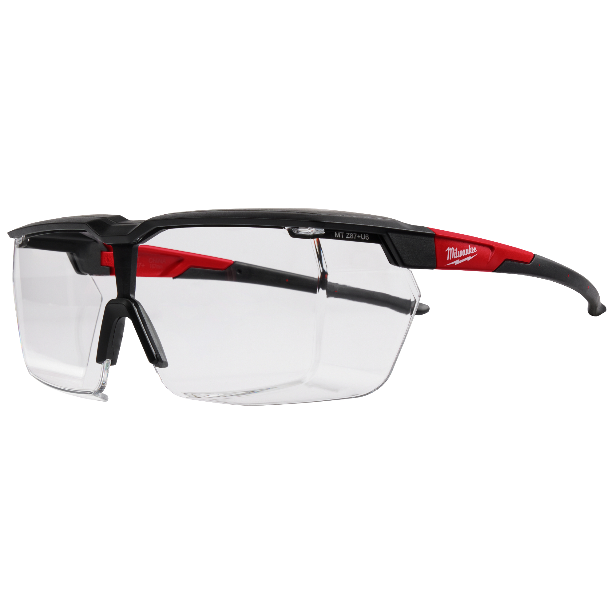 The MILWAUKEE® Over The Glasses (OTG) are designed to fit over most prescription glasses and give you the Most Secure Wear. Staying secure with a wraparound frame, these over glasses also feature a top rubber guard that helps protect your eyes against debris. For added protection, the lenses are high-velocity impact tested to provide you with military-grade impact protection. This protective eyewear features an anti-scratch hard exterior coating and a fog-free interior coating, keeping the lenses clear and unobstructed to withstand the demands of the jobsite. Clear and tinted lens color options are available, so your eyes stay safe whether working indoors or outdoors.