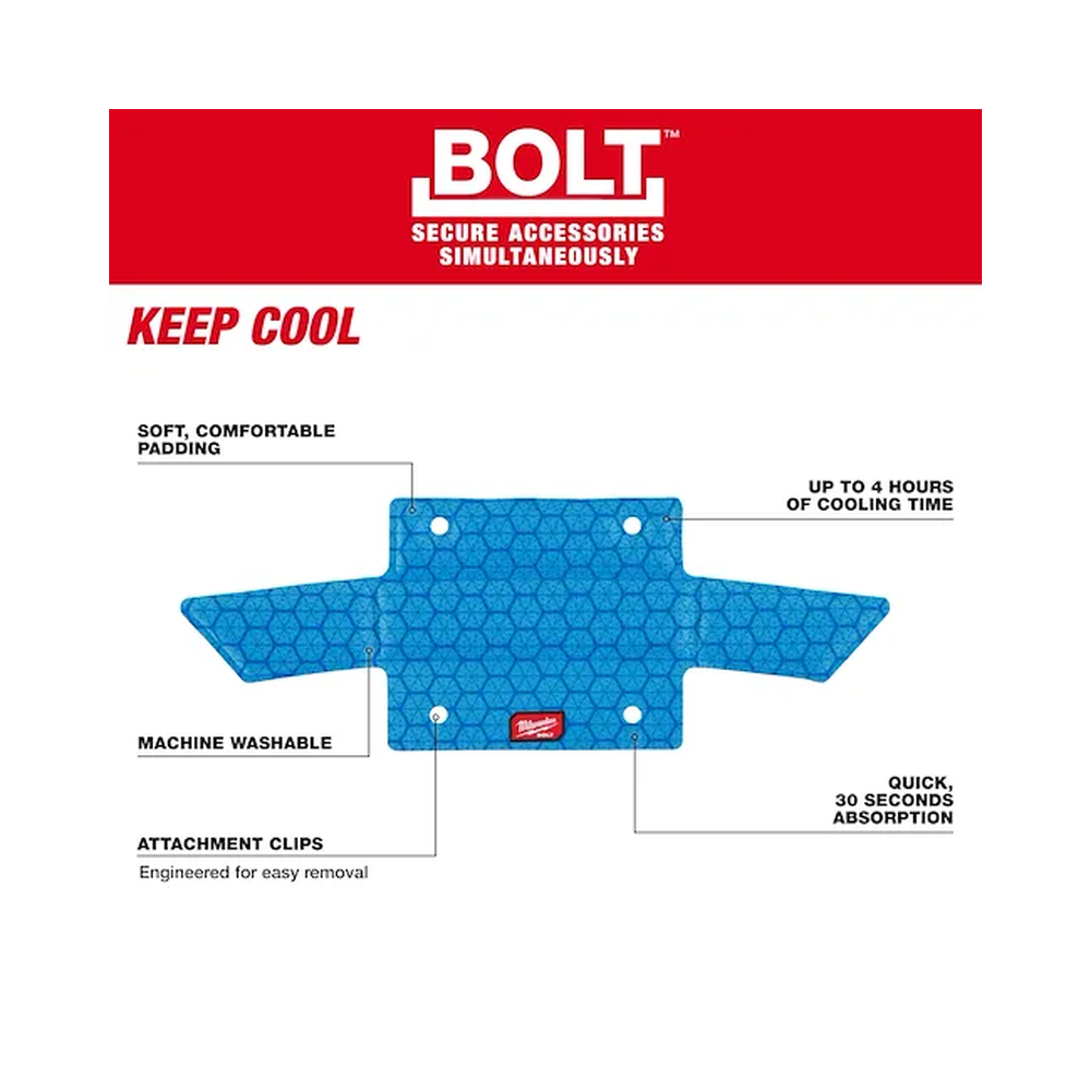 Our BOLT™ Hard Hat Cooling Sweat Band is designed to be activated by water and features microfiber technology to keep you cool on the jobsite. This sweatband can be quickly activated by running or submerging it under water for 30 seconds for full absorption. Wring out any excess water and repeat when dry. When activated, the Cooling Sweat Band will wick away moisture and heat giving you up to 4 hours of cooling time. Designed to be compatible with MILWAUKEE® Hard Hats, our Cooling Sweat Band will provide long-lasting comfort with its soft, comfortable padding and is part of the BOLT™ Accessory System which allows our users to secure accessories simultaneously.