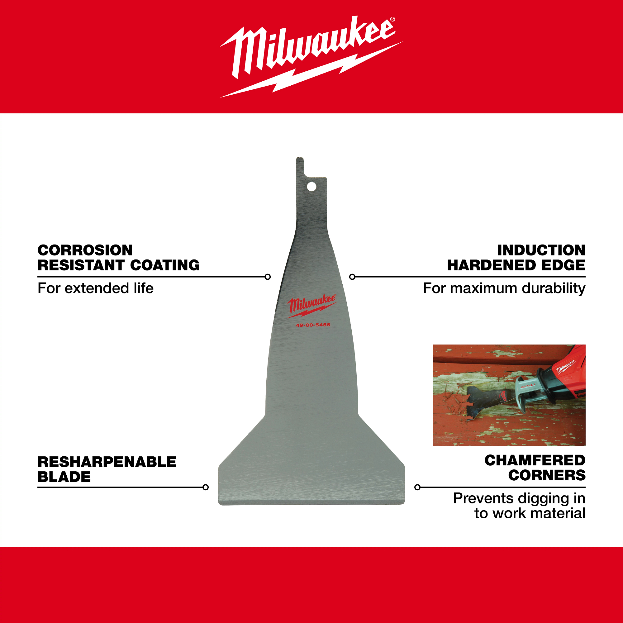 The Milwaukee 3 in. Scraper blade is designed for effortless and efficient surface prep and material removal applications with all HACKZALL® and SAWZALL® recipe saws. The 3 in. scraper blade offers a great solution for applications covering large surface areas.