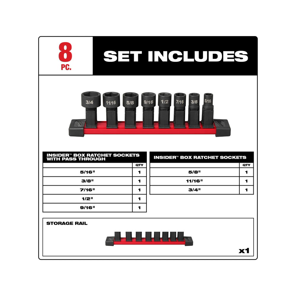 Milwaukee 49-16-1640 INSIDER Box Ratchet Socket SAE – 8PC