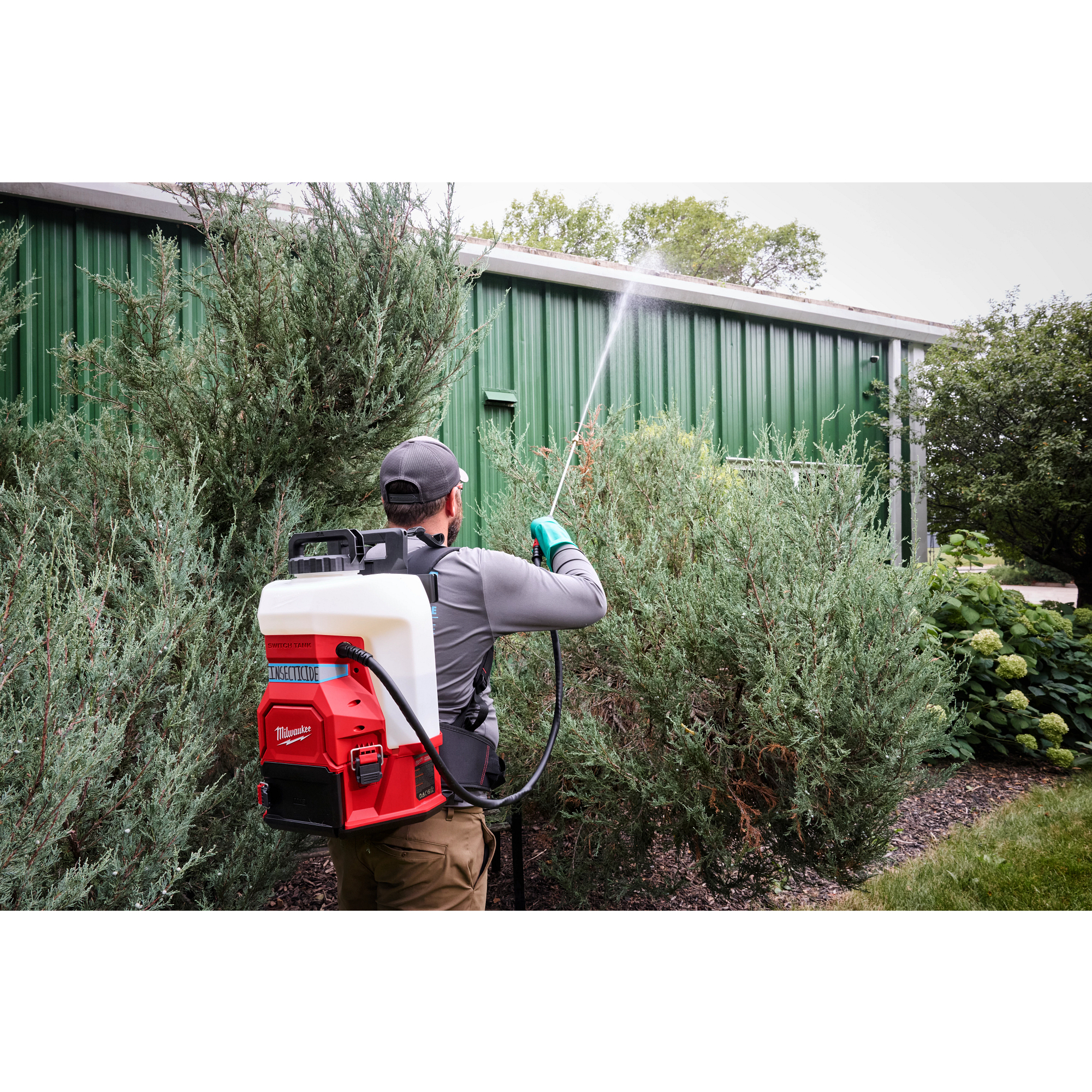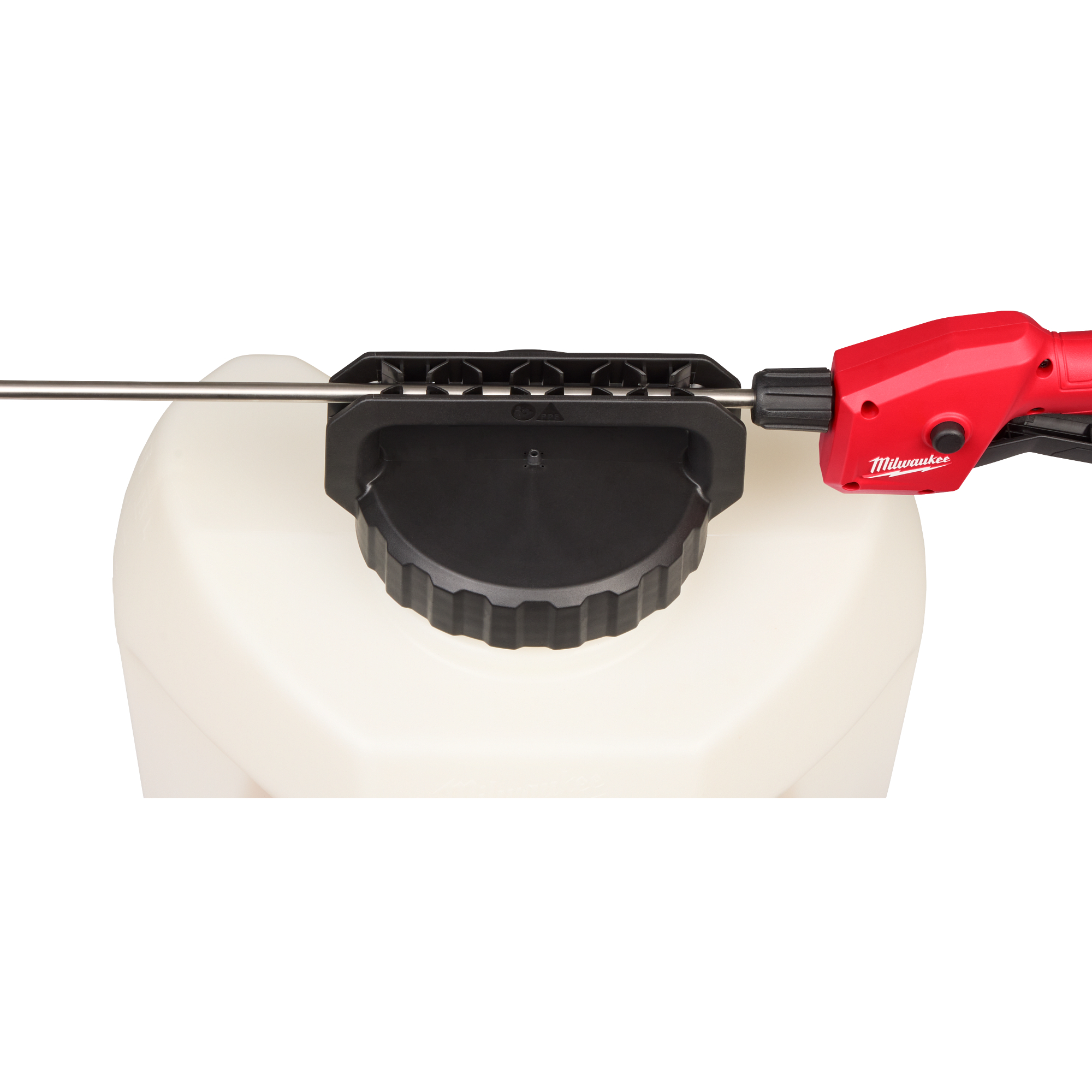 The MILWAUKEE® 4-Gallon Sprayer Tank Assembly w/ SWITCH TANK™ is an interchangeable tank powered by the M18™ Powered Base w/ SWITCH TANK™ (not included). The sprayer tank assembly includes the pump, hose, and wand. The design allows you to add on tank assemblies for different applications, eliminating cross-chemical contamination. The 4-Gallon Sprayer Tank Assembly features a dual diaphragm pump for longer pump life and Viton® seals for increased durability against harsh chemicals. The sprayer tank also has a wide mouth opening for easier pouring and a strainer that filters debris from getting into the tank.