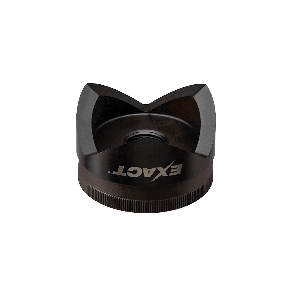 EXACTâ„¢ punches and dies have innovative features which bring value for the contractor. Heavy duty, they can punch holes in both mild and stainless steel material. Engraved crosshairs on the dies deliver clearest alignment with pre-drawn crosshairs. Both the tooth geometry of the punches, and slug removal ports on the dies, provide optimal slug removal.