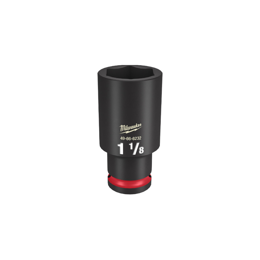 Our SHOCKWAVE Impact Duty™ 1/2″ Drive 1-1/8″ Deep 6 Point Sockets feature the boldest, longest-lasting markings and extreme impact durability in high torque applications. The stamped and ink-filled size markings enable you to select the right socket every time throughout the life of the socket. We engineered these 6-point sockets with high-strength forged steel for optimized performance in heavy-duty applications, and a non-slip hex geometry prevents fastener rounding. The dual-hole design and ring groove allow for easy socket attachment and removal. All MILWAUKEE® SHOCKWAVE Impact Duty™ Sockets are backed by our Lifetime Guarantee and meet ASME industry standards.