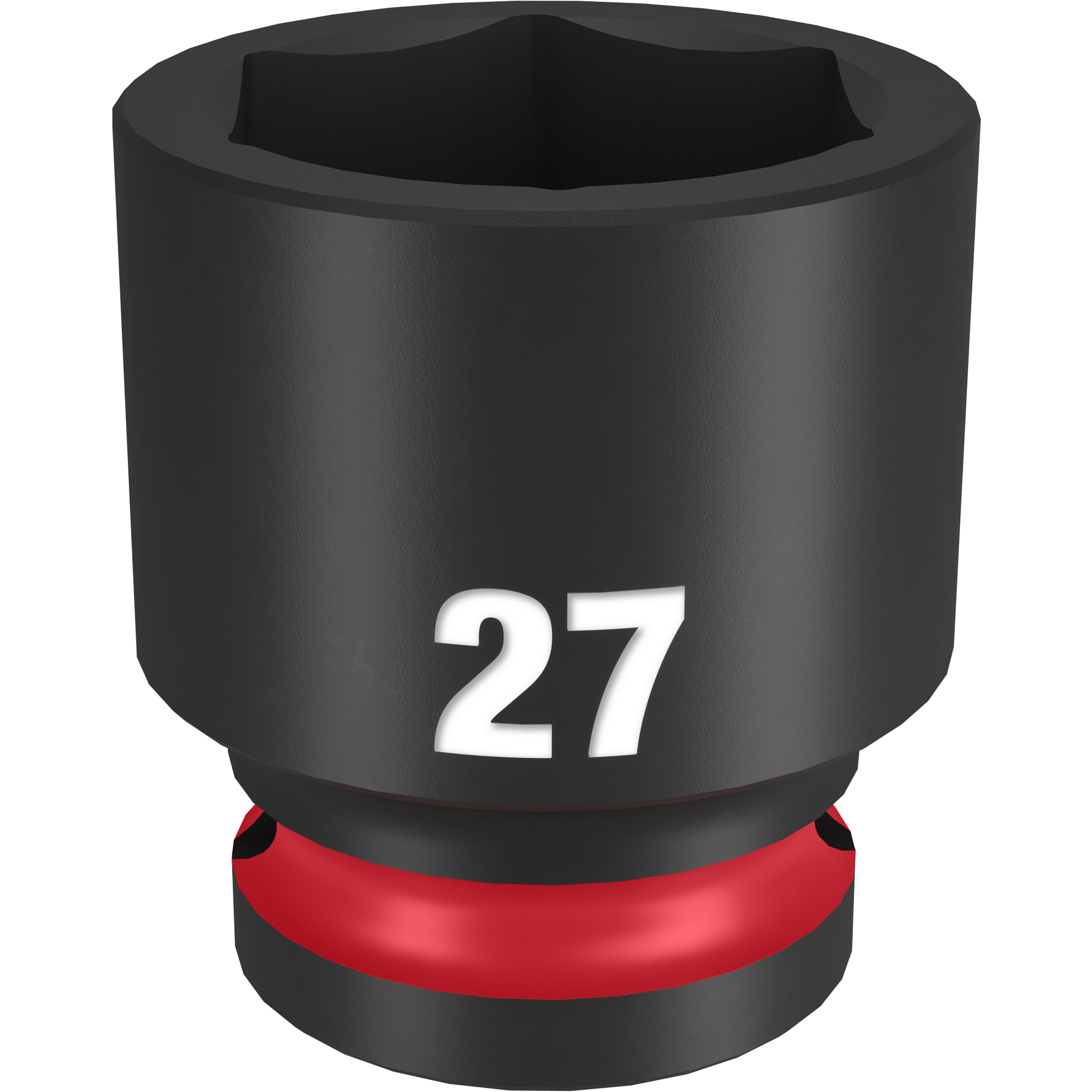 The MILWAUKEE® SHOCKWAVE Impact Duty™ 1/2″ Drive 27MM Standard 6 Point Socket features the boldest, longest-lasting markings and extreme impact durability in high torque applications. The stamped and ink-filled size marking enables an accurate socket selection every time throughout the life of the socket. Engineered with high-strength forged steel for optimized performance in heavy-duty applications, and a non-slip hex geometry prevents fastener rounding. The dual-hole design and ring groove allow for easy socket attachment and removal. All SHOCKWAVE Impact Duty™ Sockets are backed by a Lifetime Guarantee and meet ASME industry standards.