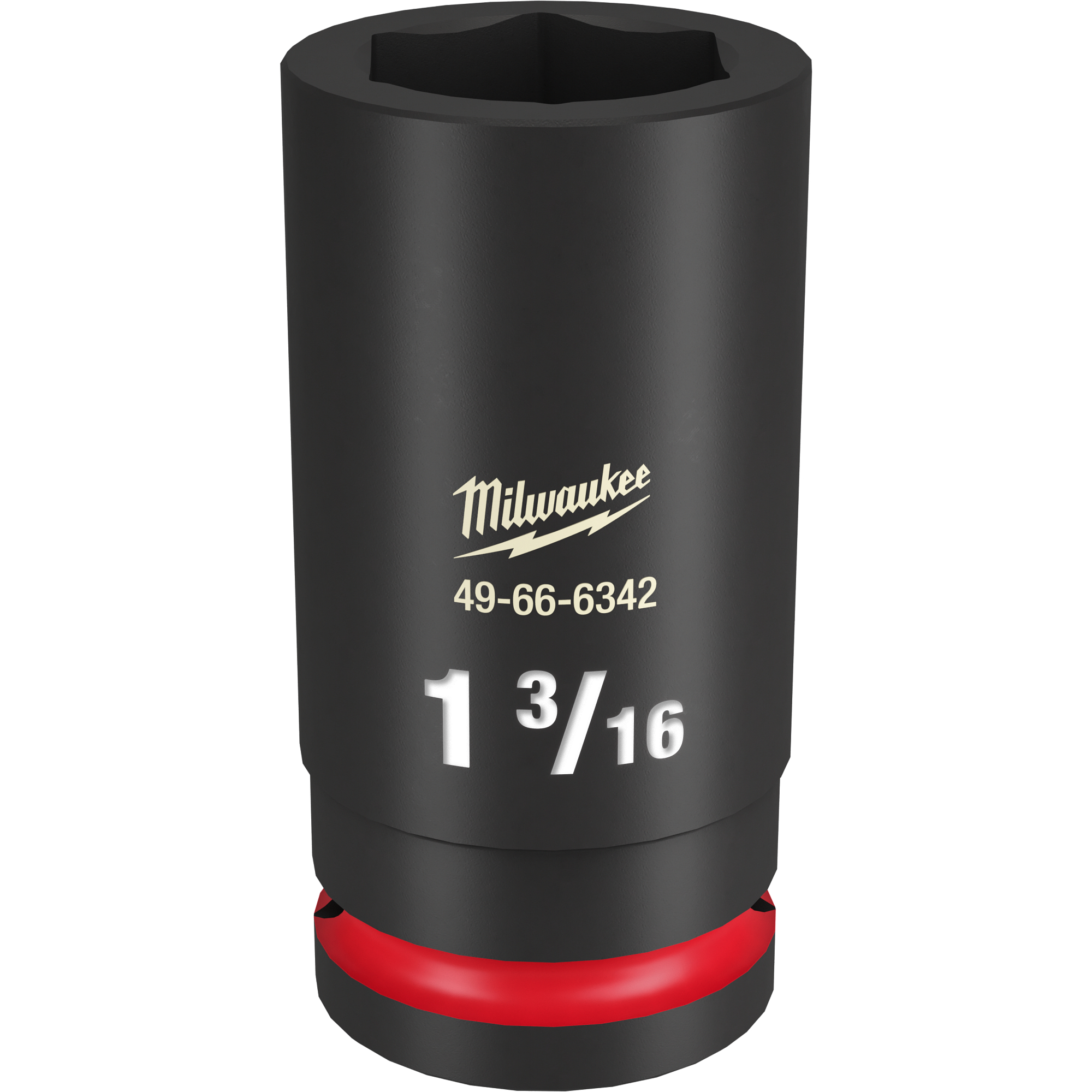 The MILWAUKEE® SHOCKWAVE Impact Duty™ 3/4″ Drive 1-3/16″ Deep 6 Point Socket features the boldest, longest-lasting markings and extreme impact durability in high torque applications. The stamped and ink-filled size marking enables an accurate socket selection every time throughout the life of the socket. Engineered with high-strength forged steel for optimized performance in heavy-duty applications, and a non-slip hex geometry prevents fastener rounding. The dual-hole design and ring groove allow for easy socket attachment and removal. All SHOCKWAVE Impact Duty™ Sockets are backed by a Lifetime Guarantee and meet ASME industry standards. Compatible with optional Retaining Ring (49-66-6744).