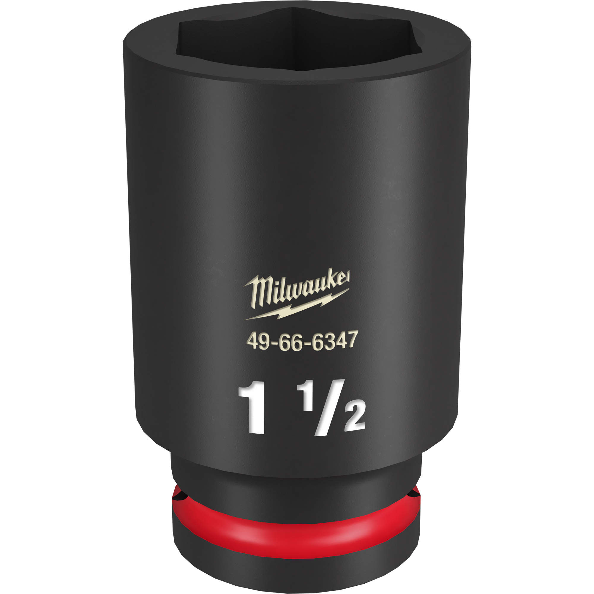 The MILWAUKEE® SHOCKWAVE Impact Duty™ 3/4″ Drive 1-1/2″ Deep 6 Point Socket features the boldest, longest-lasting markings and extreme impact durability in high torque applications. The stamped and ink-filled size marking enables an accurate socket selection every time throughout the life of the socket. Engineered with high-strength forged steel for optimized performance in heavy-duty applications, and a non-slip hex geometry prevents fastener rounding. The dual-hole design and ring groove allow for easy socket attachment and removal. All SHOCKWAVE Impact Duty™ Sockets are backed by a Lifetime Guarantee and meet ASME industry standards. Compatible with optional Retaining Ring (49-66-6744).