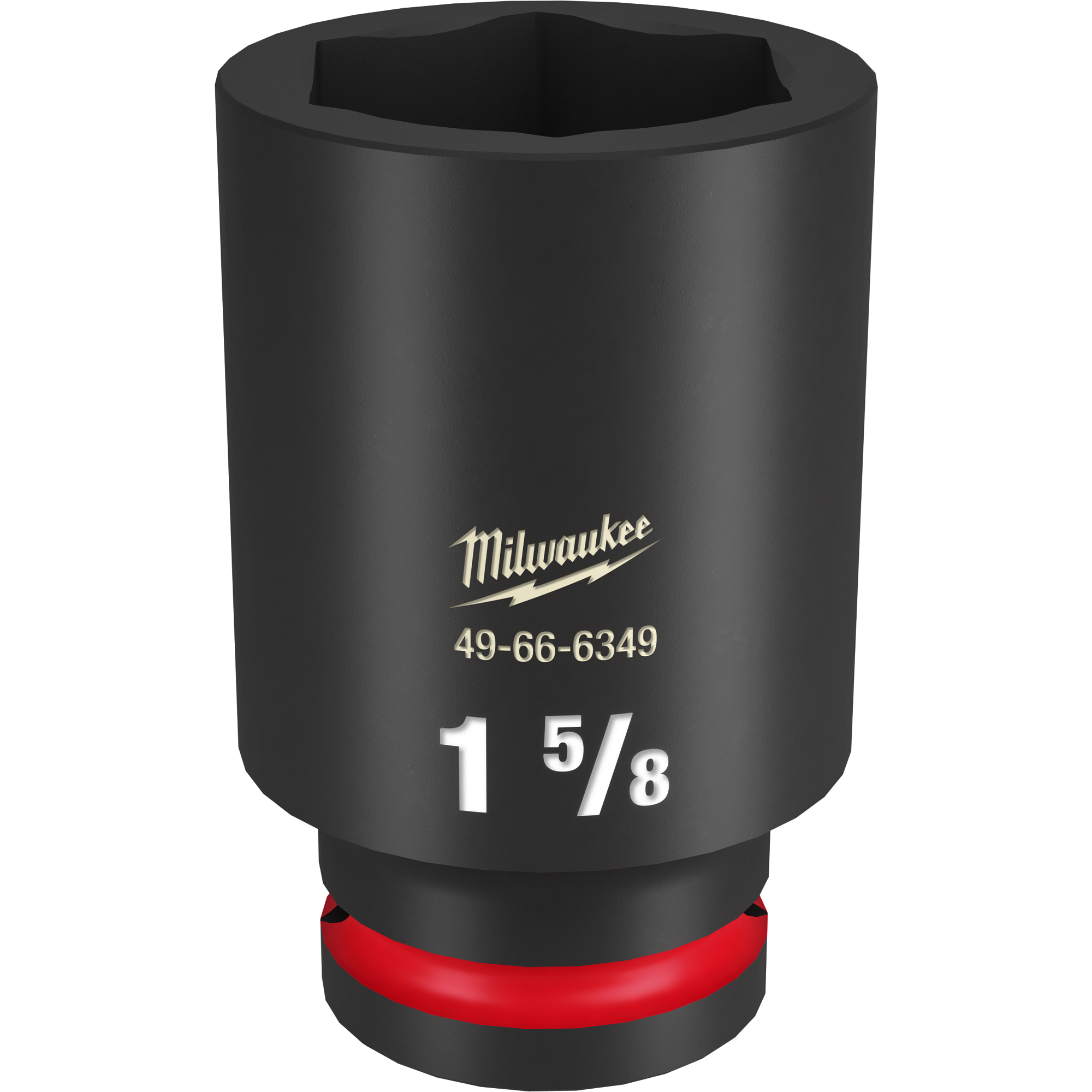 The MILWAUKEE® SHOCKWAVE Impact Duty™ 3/4″ Drive 1-5/8″ Deep 6 Point Socket features the boldest, longest-lasting markings and extreme impact durability in high torque applications. The stamped and ink-filled size marking enables an accurate socket selection every time throughout the life of the socket. Engineered with high-strength forged steel for optimized performance in heavy-duty applications, and a non-slip hex geometry prevents fastener rounding. The dual-hole design and ring groove allow for easy socket attachment and removal. All SHOCKWAVE Impact Duty™ Sockets are backed by a Lifetime Guarantee and meet ASME industry standards. Compatible with optional Retaining Ring (49-66-6744).