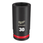 The MILWAUKEE® SHOCKWAVE Impact Duty™ 3/4″ Drive 30MM Deep 6 Point Socket features the boldest, longest-lasting markings and extreme impact durability in high torque applications. The stamped and ink-filled size marking enables an accurate socket selection every time throughout the life of the socket. Engineered with high-strength forged steel for optimized performance in heavy-duty applications, and a non-slip hex geometry prevents fastener rounding. The dual-hole design and ring groove allow for easy socket attachment and removal. All SHOCKWAVE Impact Duty™ Sockets are backed by a Lifetime Guarantee and meet ASME industry standards. Compatible with optional Retaining Ring (49-66-6744).